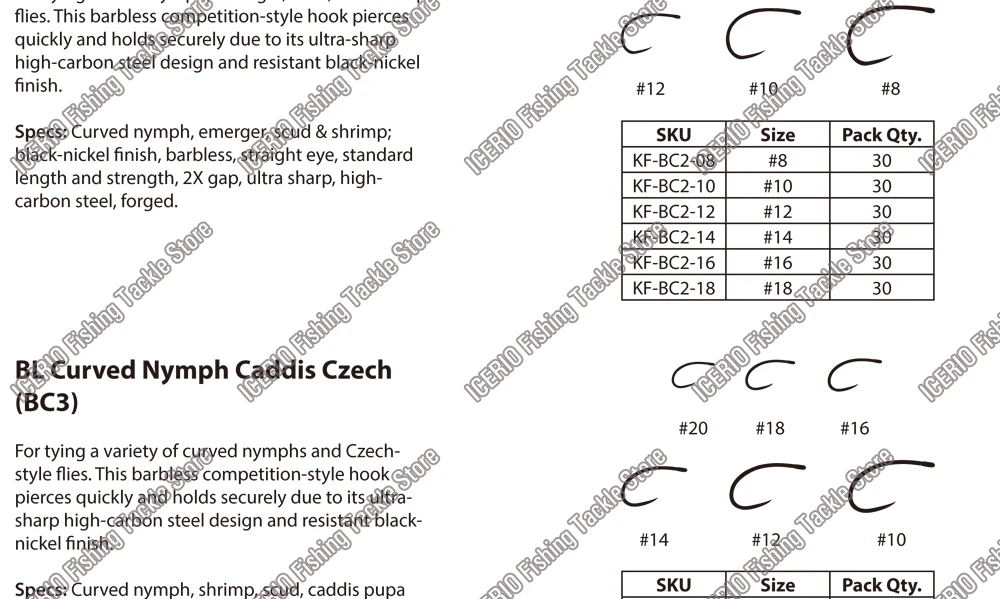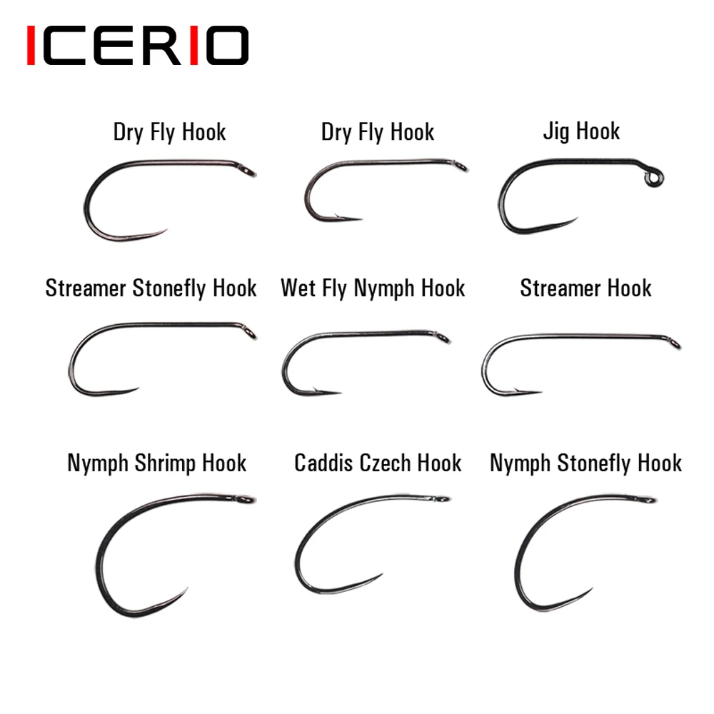 ICERIO 30 шт., Стандартный Крючок для вязания нахлыстом, для соревнований, для сухой и влажной рыбалки, Нимфа, рубашка, Caddis, стример, форель, крючок для ловли нахлыстом