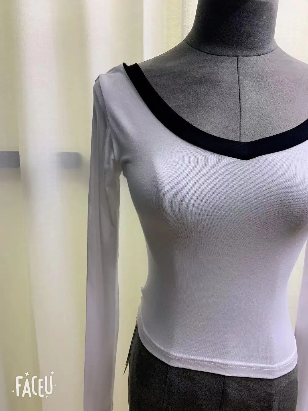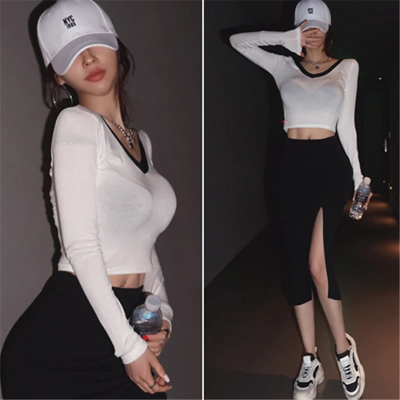 Новинка, летняя футболка, Женская эластичная футболка, женская одежда, топы, тонкая футболка, женская, с длинным рукавом, однотонная, женская, белая, сексуальная, Canale