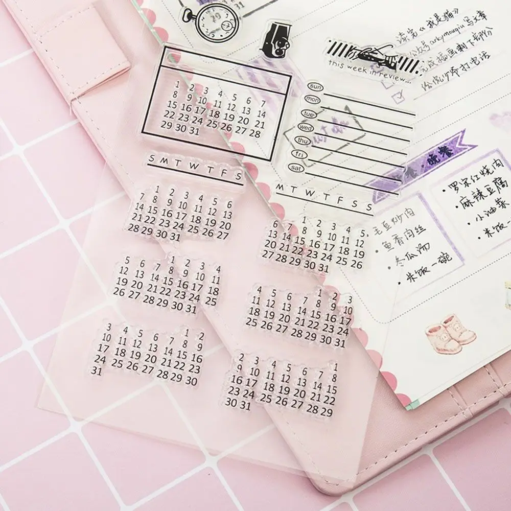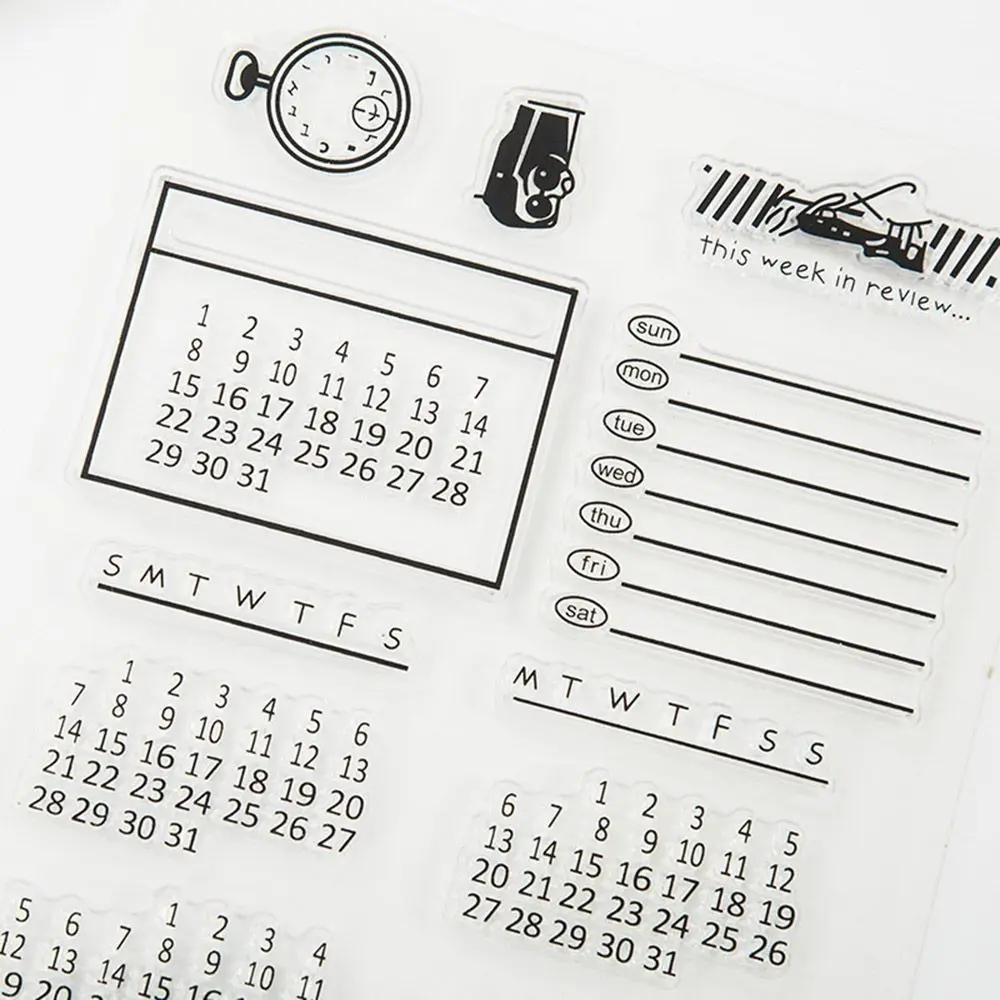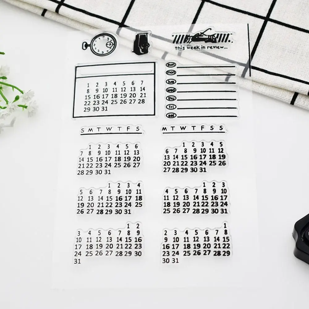 1 шт. прозрачный Еженедельный ежемесячный календарь зеркальное время часы четкие штампы DIY силиконовый прозрачный набор штампов