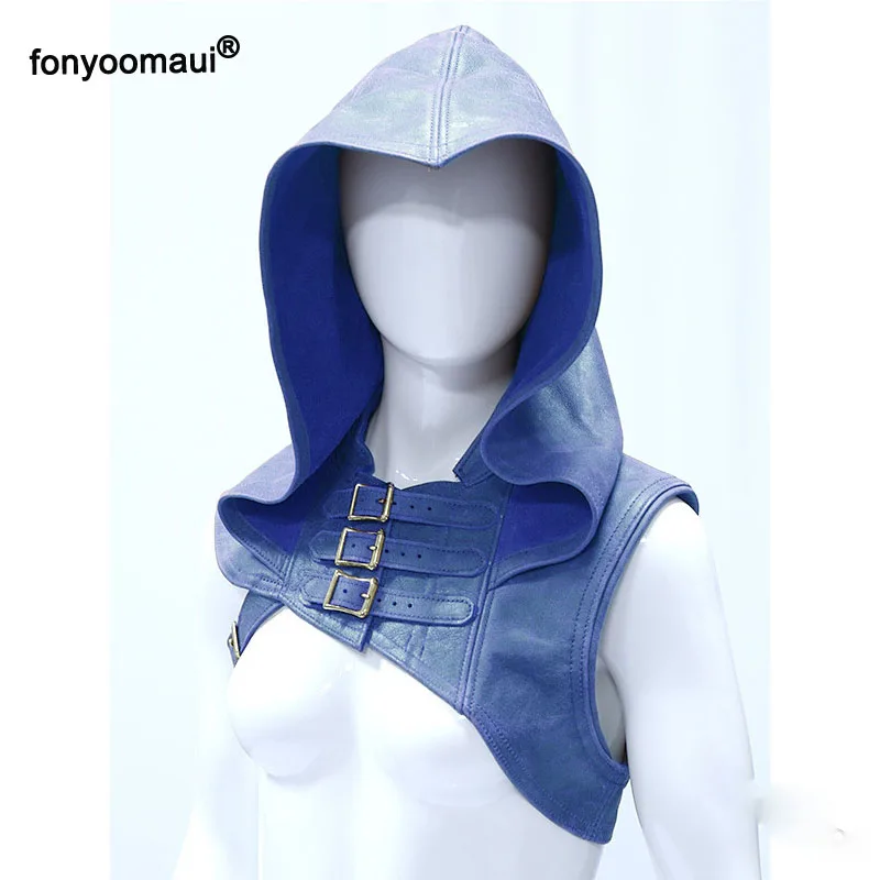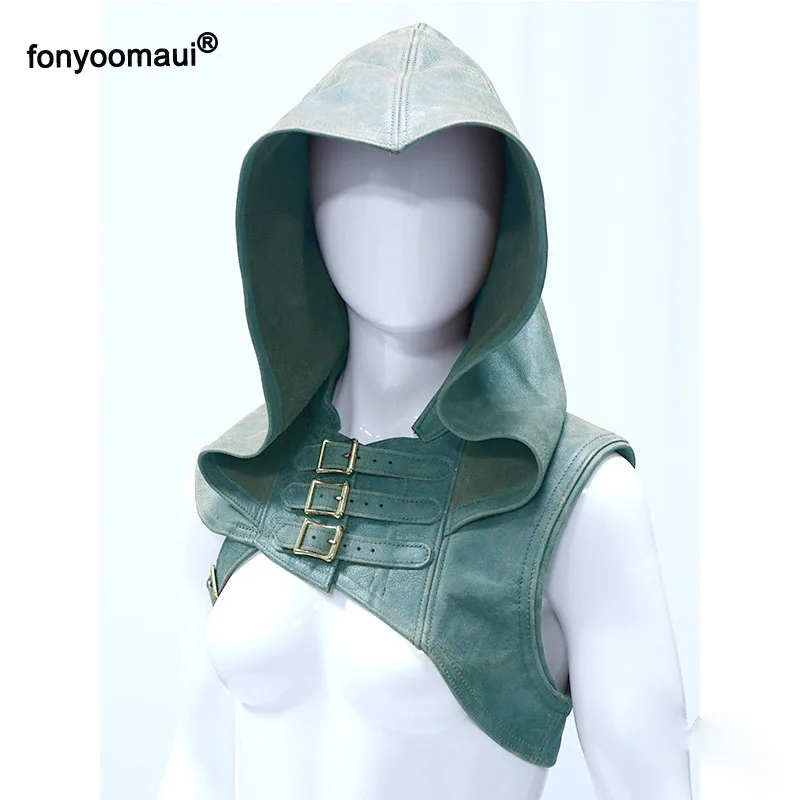 -Кожаная ткань. -Аксессуары для косплея на Хэллоуин, кепка ассасина для косплея -Средневековый винтажный костюм накидки ведьмы монаха с капюшоном