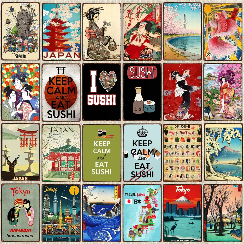 Суши еда японский постер укиё-э металлическая Оловянная вывеска настенный Бар Ресторан домашний магазин Декор сувенир для путешествий 30x20 см DU-6096A