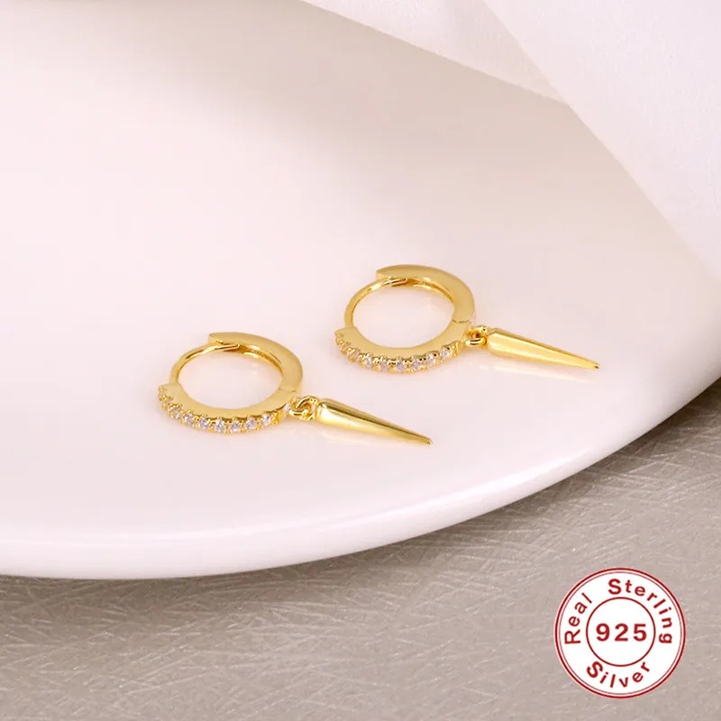 Настоящие 925 серебряные серьги для женщин, золотые серьги с шипами для девушек, серьги для пирсинга в ушах, женские циркониевые геометрические серьги K5
