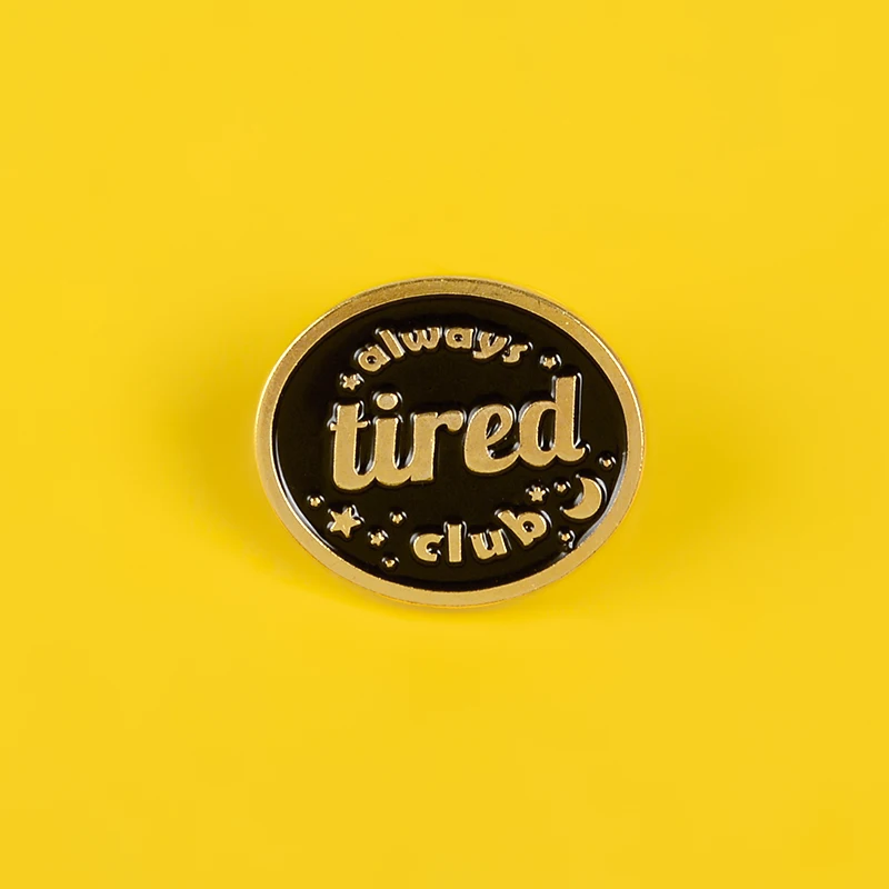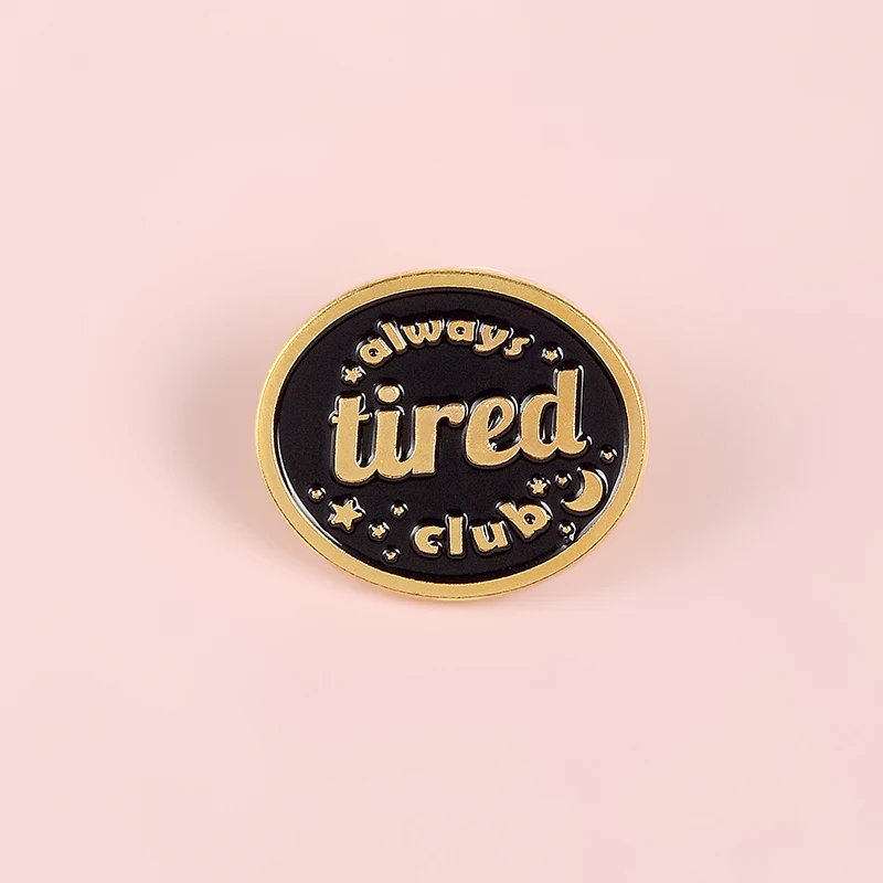 Черная эмалированная булавка на заказ, всегда уставшие Клубные броши для рубашки, лацкана, сумки, ленивый значок в стиле панк, винтажное ювелирное изделие, подарок для друзей