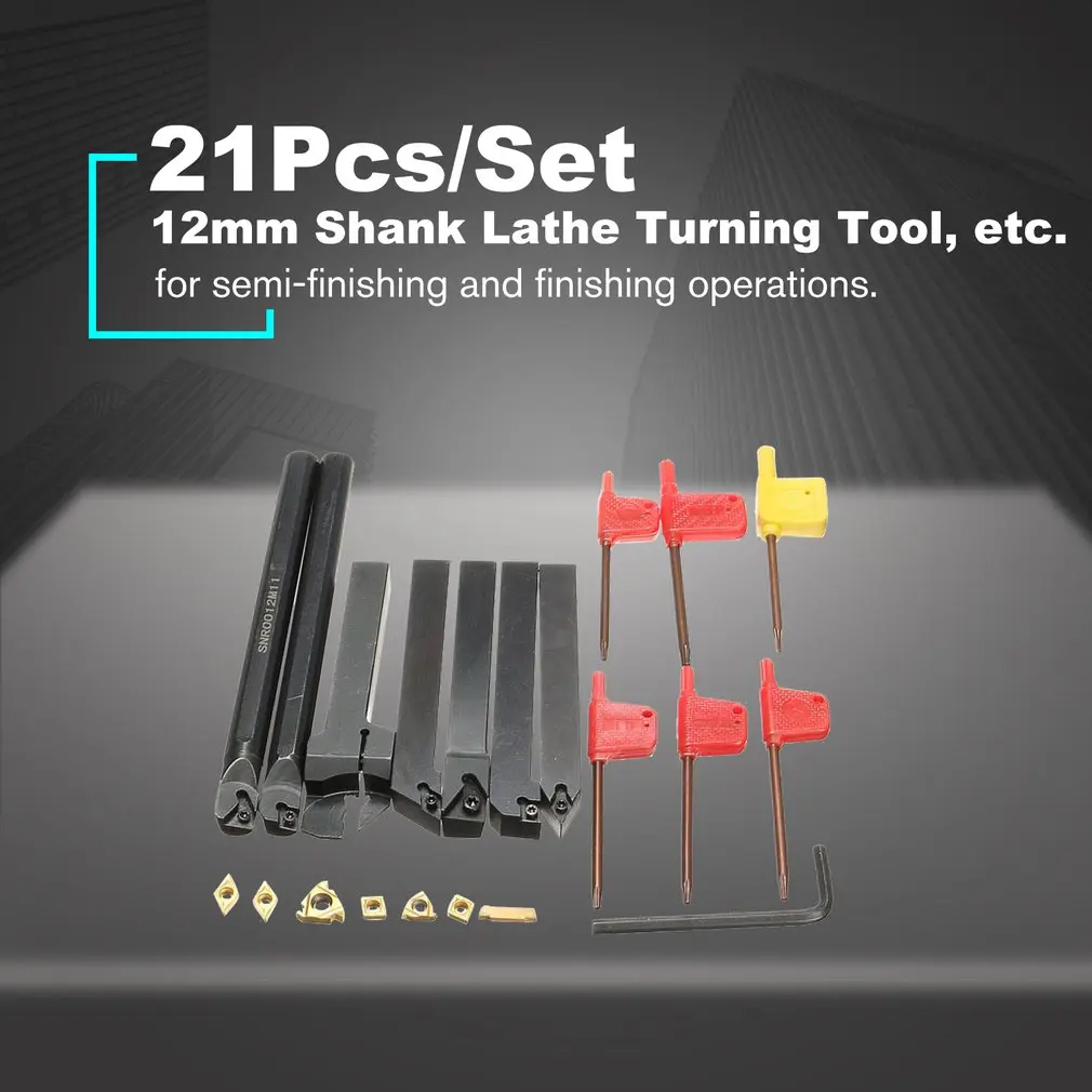 Держатель для токарного станка с хвостовиком 21 шт.компл. 12 мм, Расточная штанга + вставные лезвия + гаечный ключ, фотоэлементSER1212H16SCL1212H06