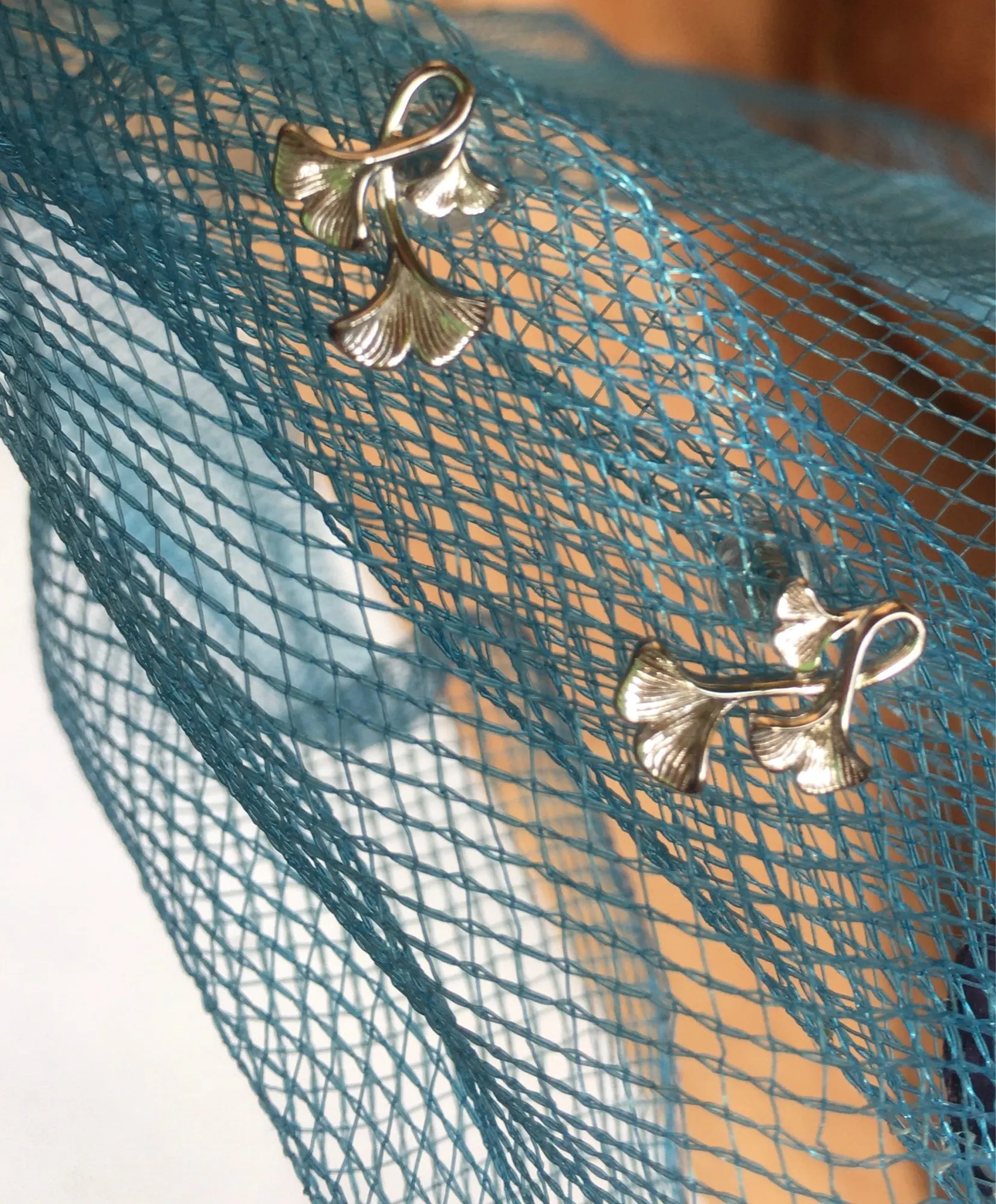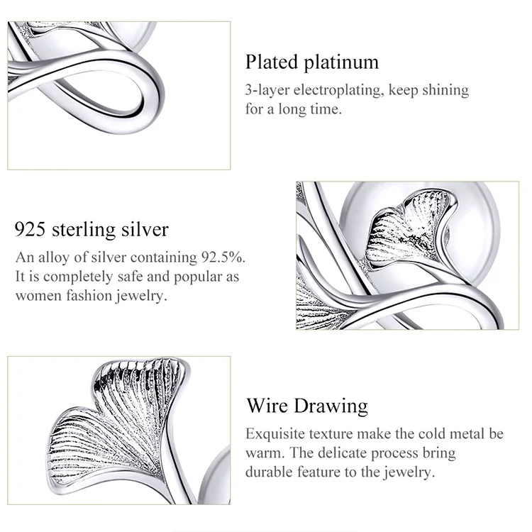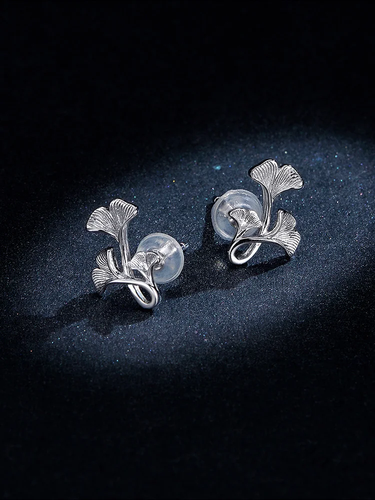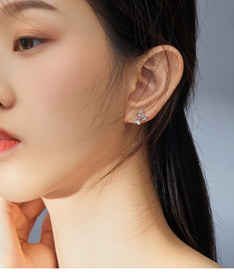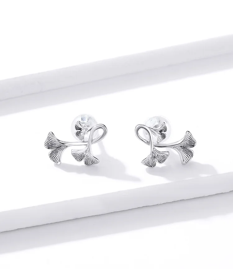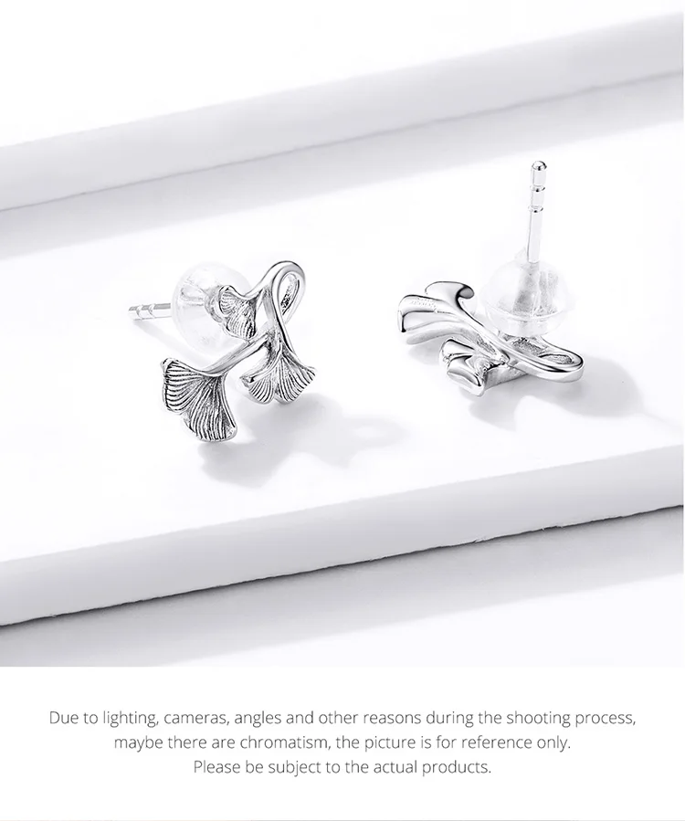 Серьги-гвоздики женские из серебра 925 пробы в виде листьев гинкго, BSE328