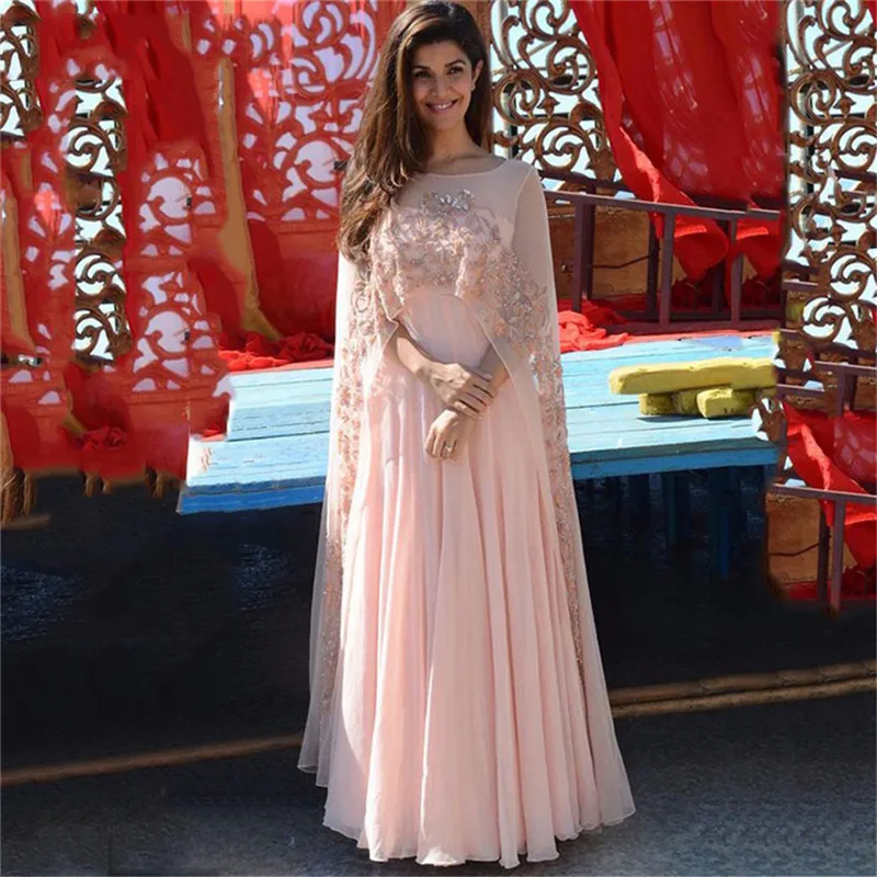 Розовое арабское мусульманское шифоновое вечернее платье Sevintage, накидка из двух частей с кружевами и кристаллами, длинное бальное платье для выпускного вечера