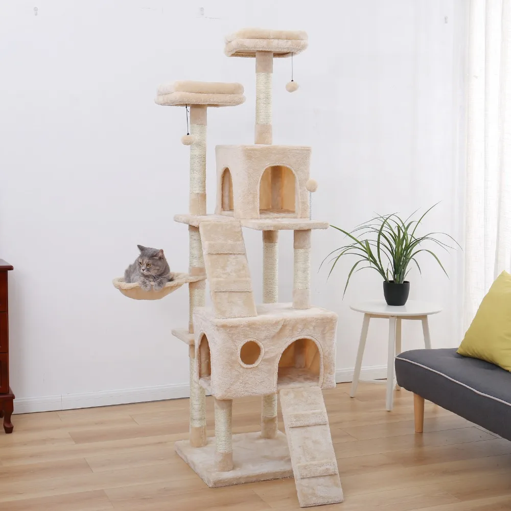 Дерево для крупных кошек 180 см, Многоуровневая доска для кошек с уютными насадками, устойчивая рама для лазания, игрушки для кошек