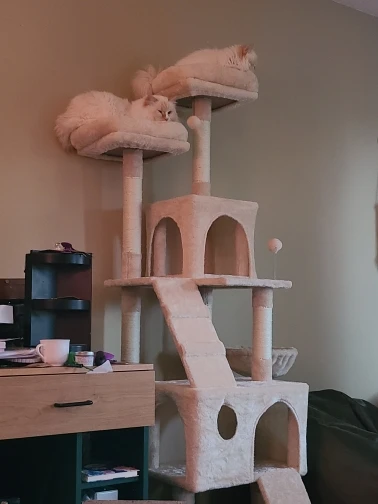 Котам это нравится! Сборка была проще, чем ожидалось. Шаг лестницы для них-руководство ужасно, чтобы описать, как оно должно выглядеть. Поэтому обратитесь к моему изображению для размещения петли