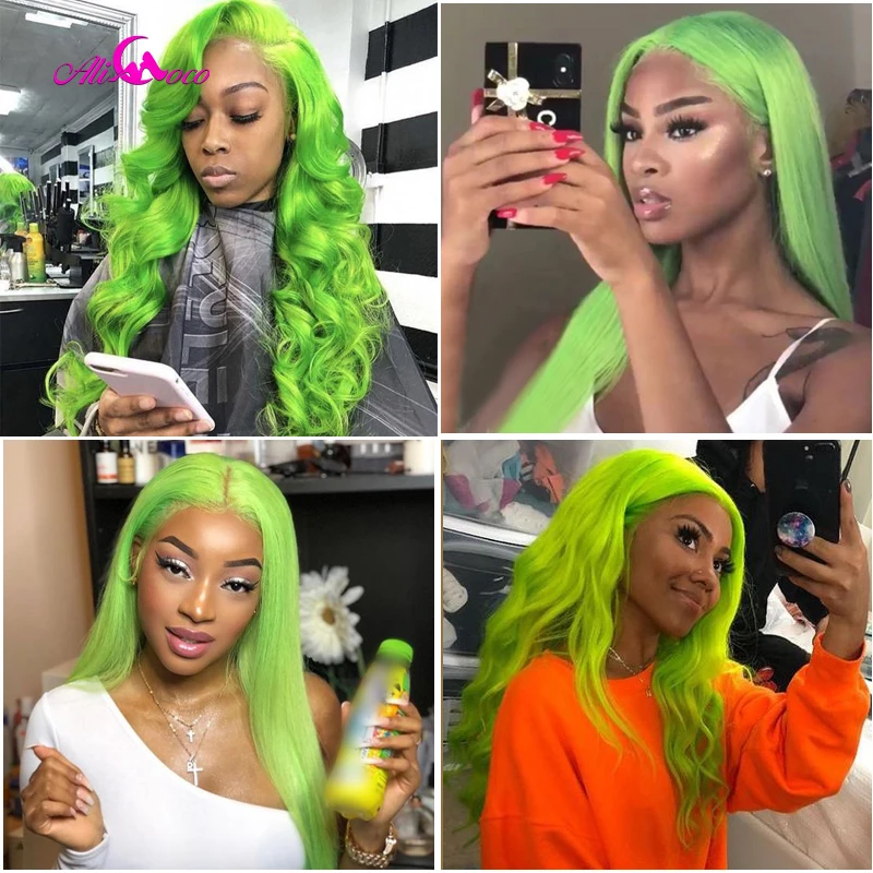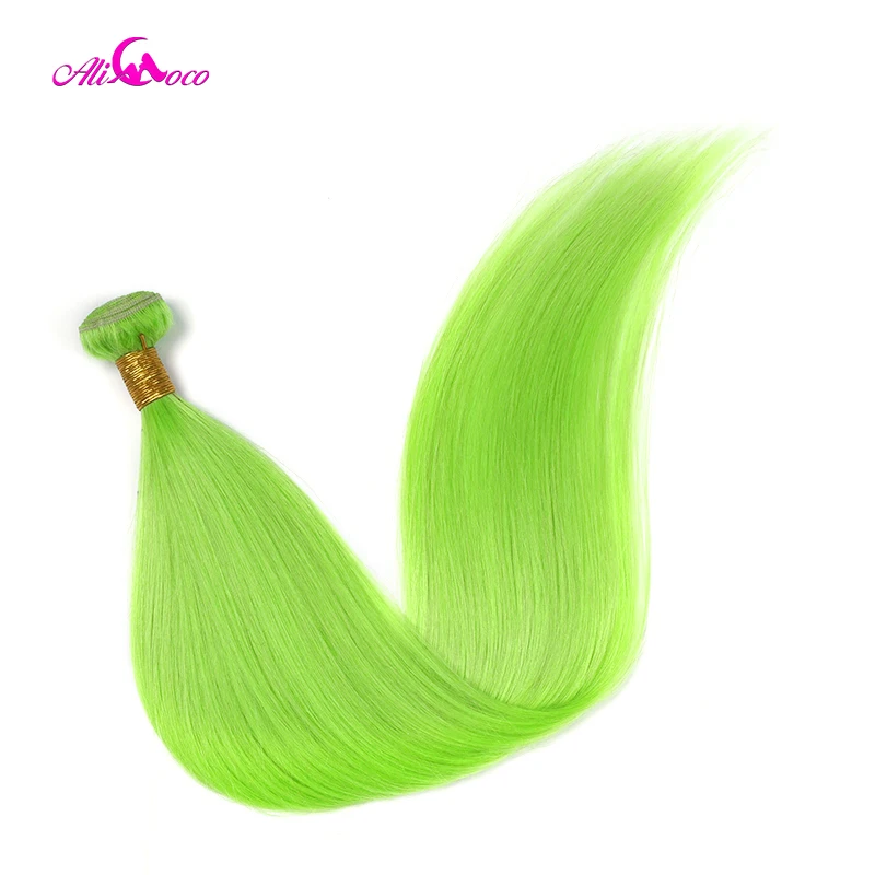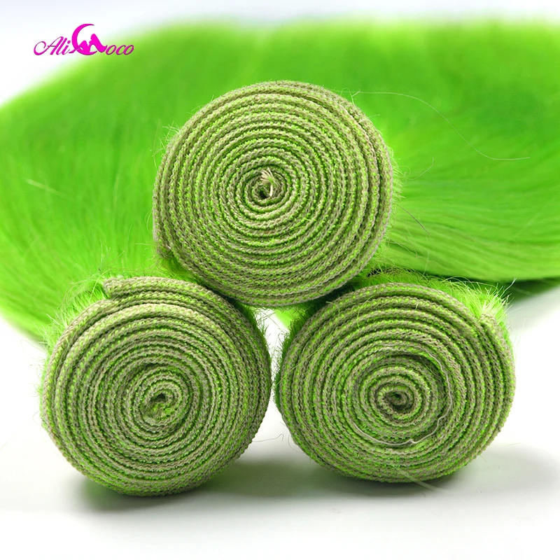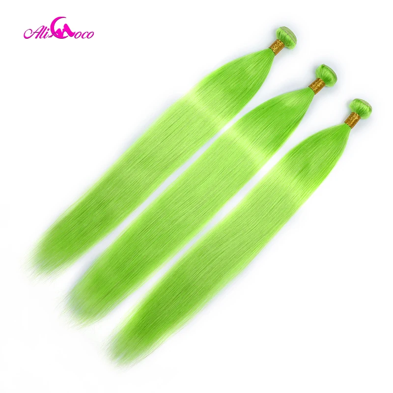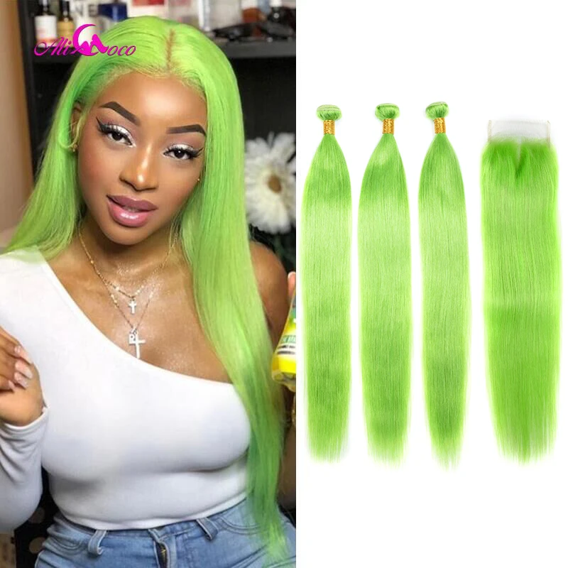 Зелёные бразильские прямые волосы Ali Coco, 3 пряди с кружевной застежкой 4X4, 100% человеческие волосы, пучки с застежкой, наращивание волос Remy
