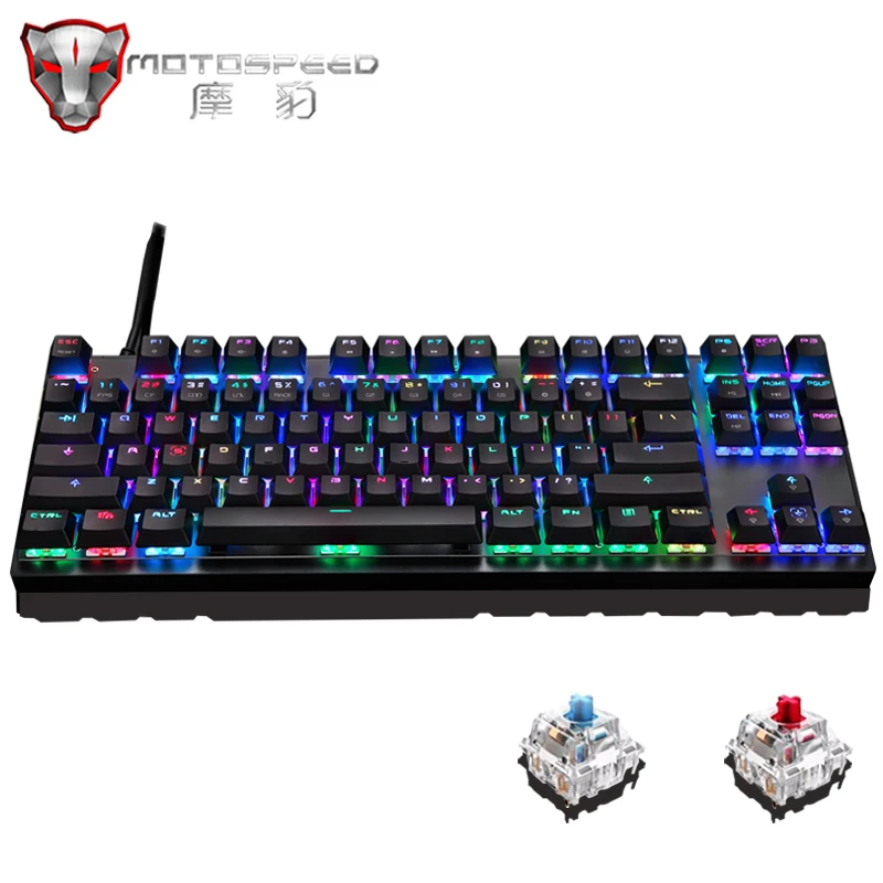 Новая Подлинная Механическая игровая клавиатура Motospeed RGB с 87 клавишами, светодиодный, подсветка, защита от привидения, USB Проводная клавиатура для ПК, компьютера, геймера