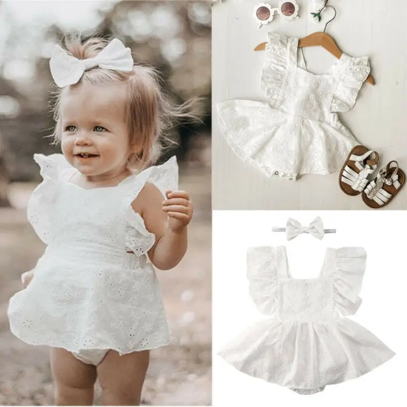 Комбинезон детский кружевной без рукавов, для девочек, белый цвет