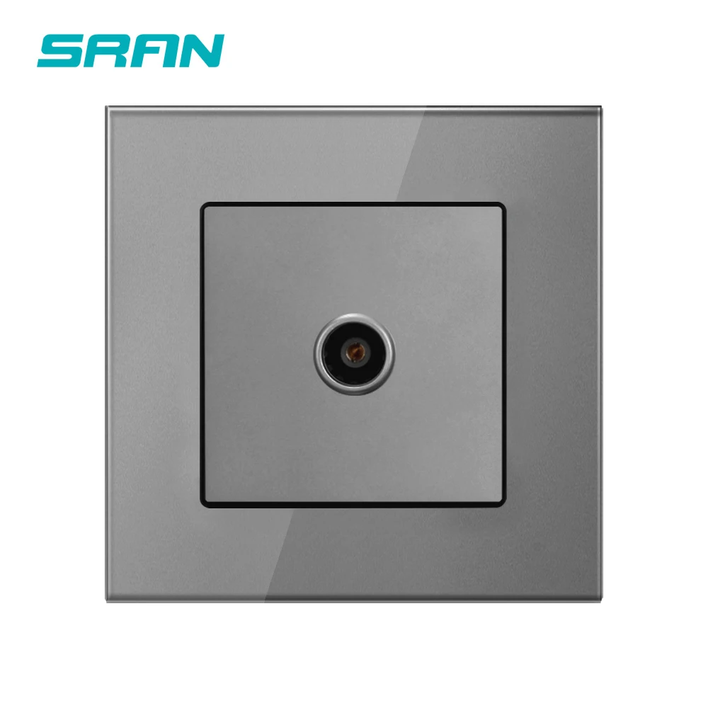 Новая розетка SRAN для телевизора, домашнее украшение, настенная розетка для телевизора, доступ к сигналу, 86 мм * 86 мм, прозрачное закаленное стекло, белая A601-010