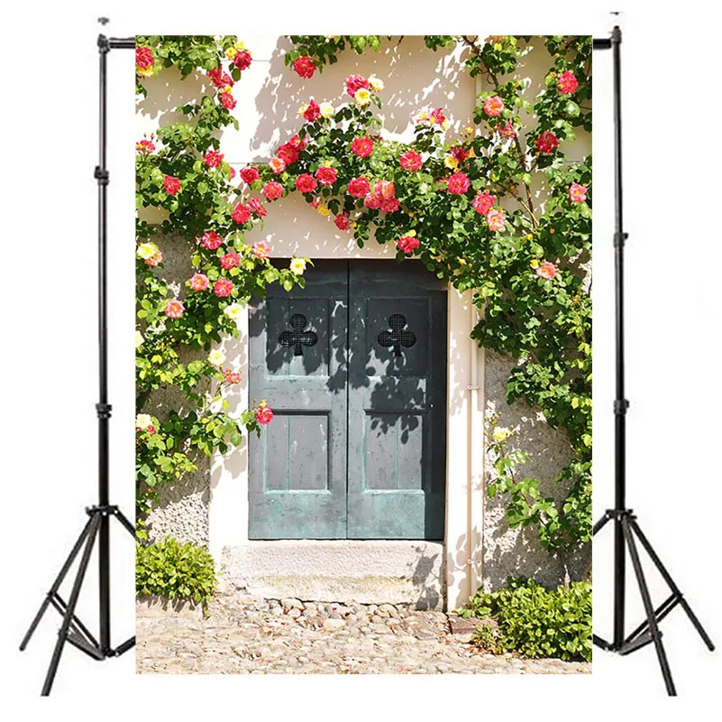 Фон для фотосъемки с зелеными листьями кирпичной стеной на весну для свадьбы, дня рождения, фон для фотостудии в стиле ретро, двери, цветы