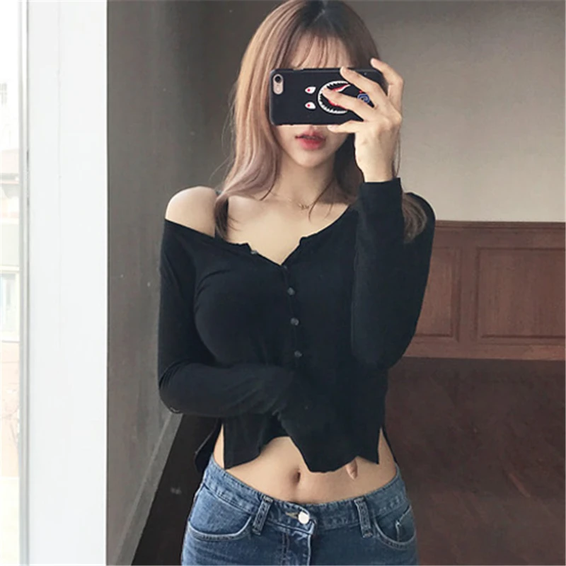 Новинка, летняя футболка, Женская эластичная футболка, женская одежда, топы, тонкая футболка, Женская Однотонная футболка с длинным рукавом, Женская майка, Сексуальная футболка