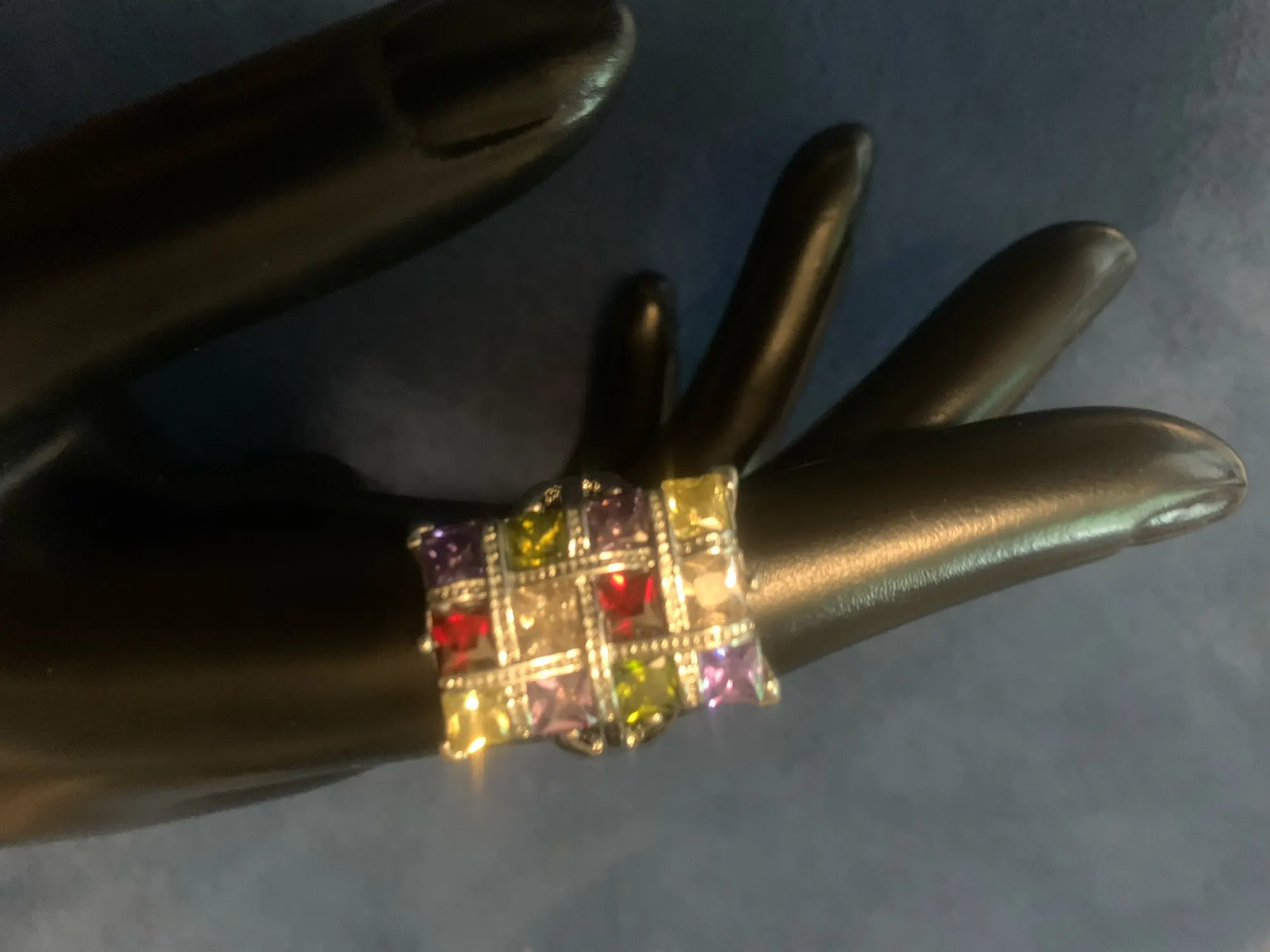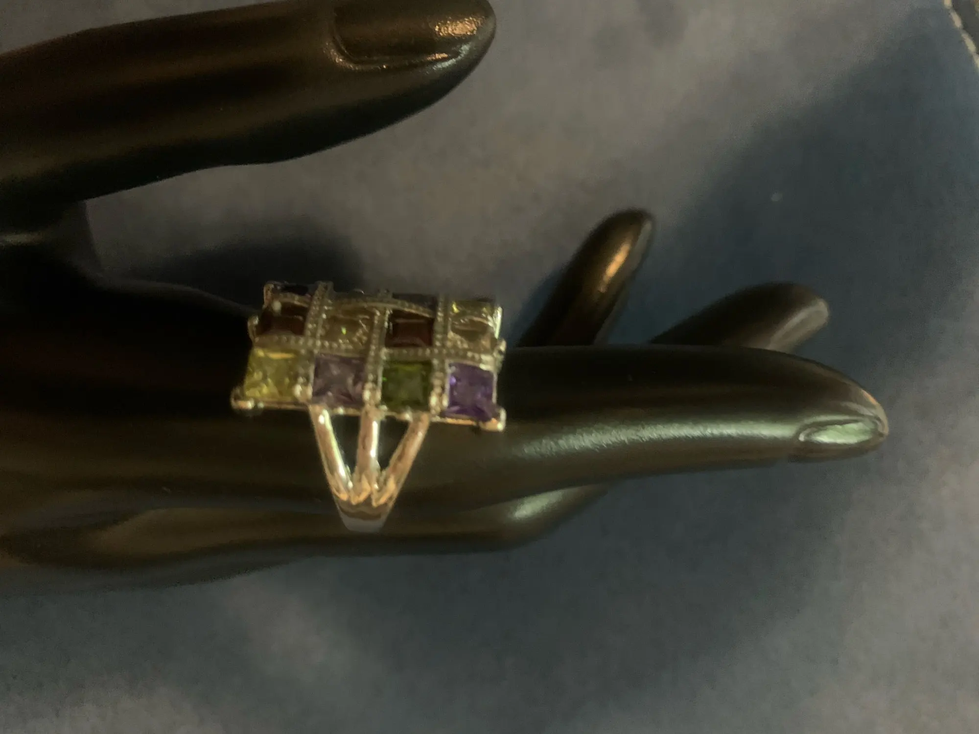 Прям впечатлилась! Создалось ощущение, что это копия какого-то кольца, созданного известным модельером. Смотришь, так и кажется, что основа из родированного серебра, а камушки - настоящие аметисты, цитрины, перидоты, гранаты и султаниты.