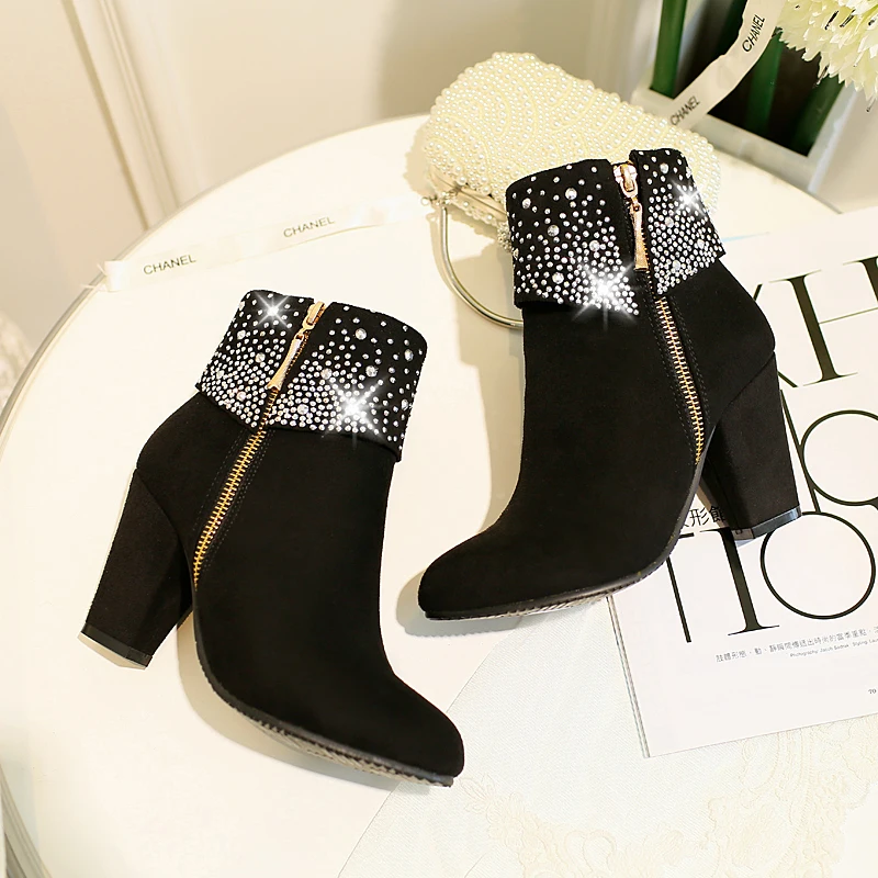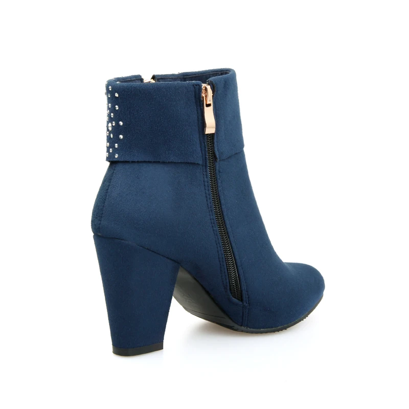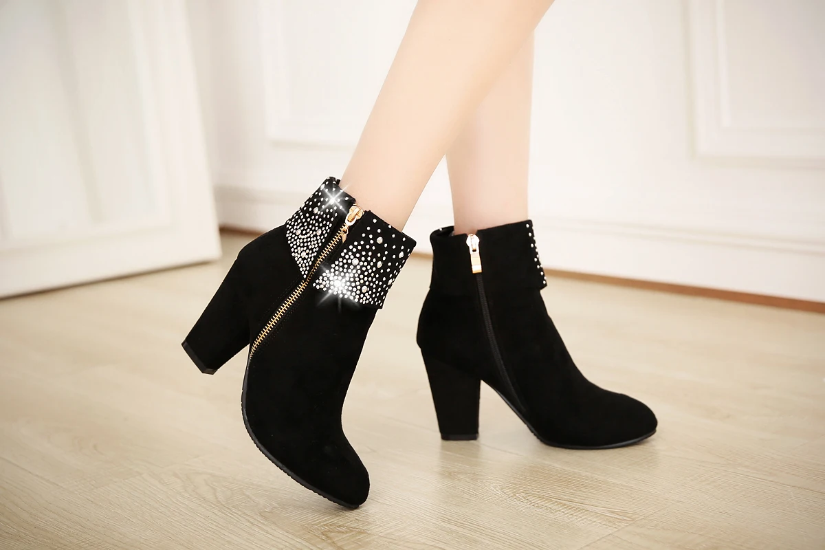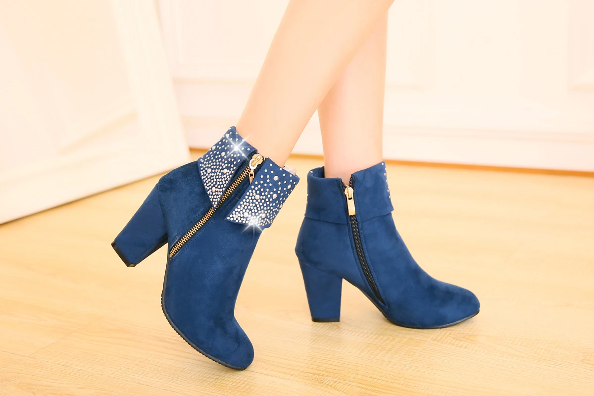 Женские ботинки до щиколотки, с круглым носком, на высоком каблуке, большие размеры, демисезонные красные, черные, синие ботинки