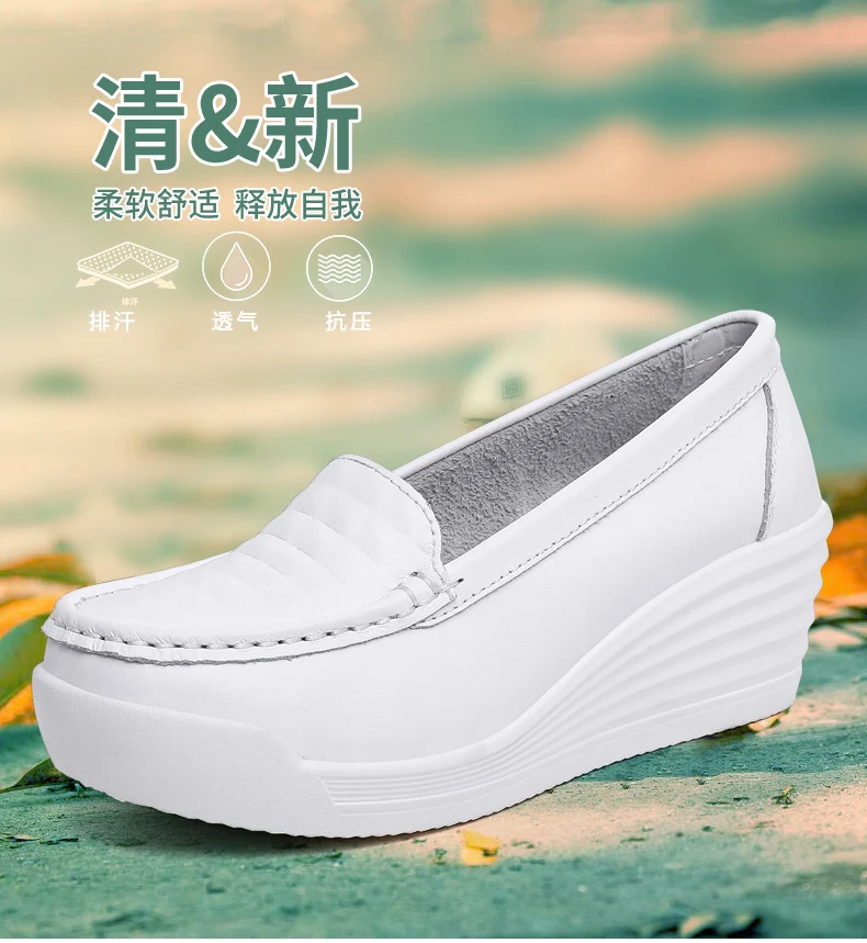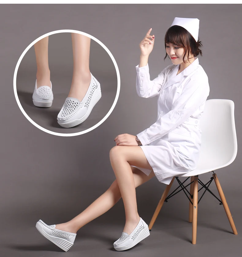 Новая обувь для медсестер женская обувь для дома ульсветильник кие дышащие Нескользящие мягкие кожаные туфли обувь для беременных женщин Рабочая обувь на плоской подошве