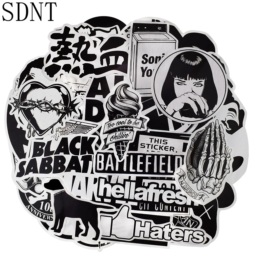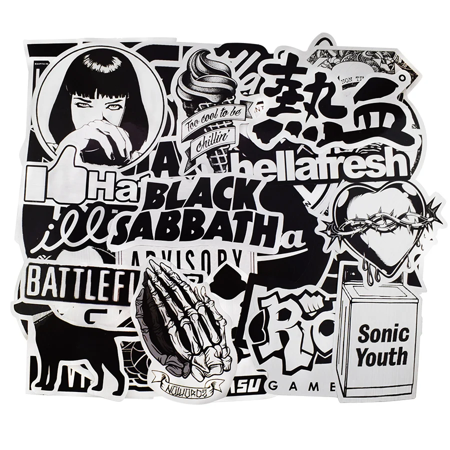 50 шт. черно-белые случайные наклейки мультфильм Граффити JDM смешн...