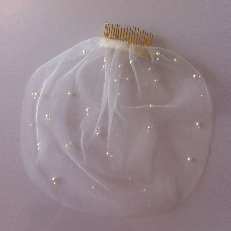 Белая Тюлевая Фата, фата с жемчугом, элегантные свадебные аксессуары для невесты и девушек, однослойная женская свадебная фата с бисером, вуаль для свадьбы