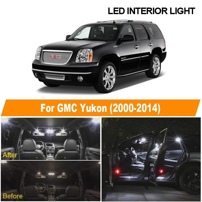 Белые Автомобильные светодиодные лампы для внутреннего освещения, комплект для GMC Yukon 2000 2001 2002 2003-2010 2011 2012 2013 2014, купольная Лицензионная лампа для карты