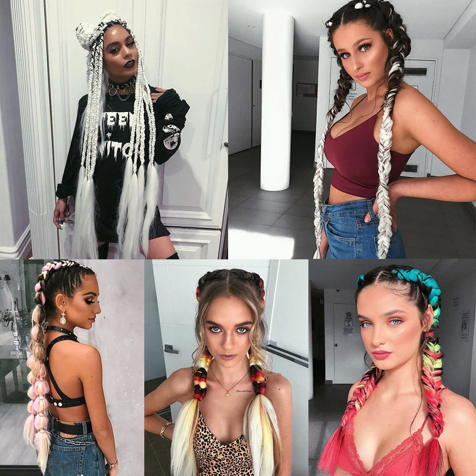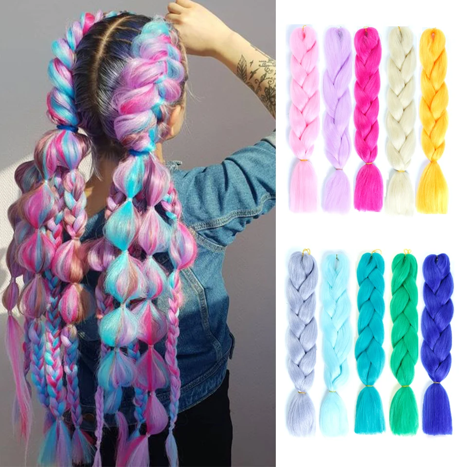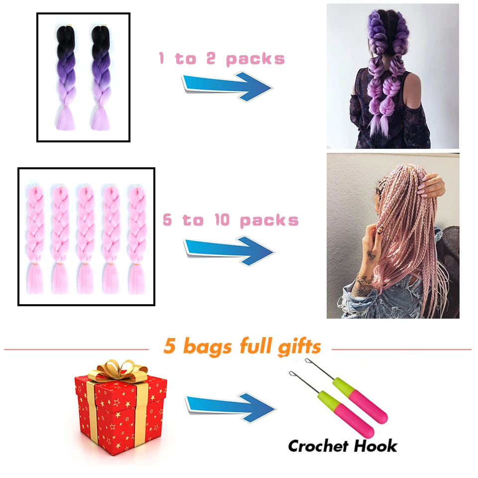 BUQI 100 гшт. 24 дюйма пучки волос Омбре синтетические Джамбо плете...