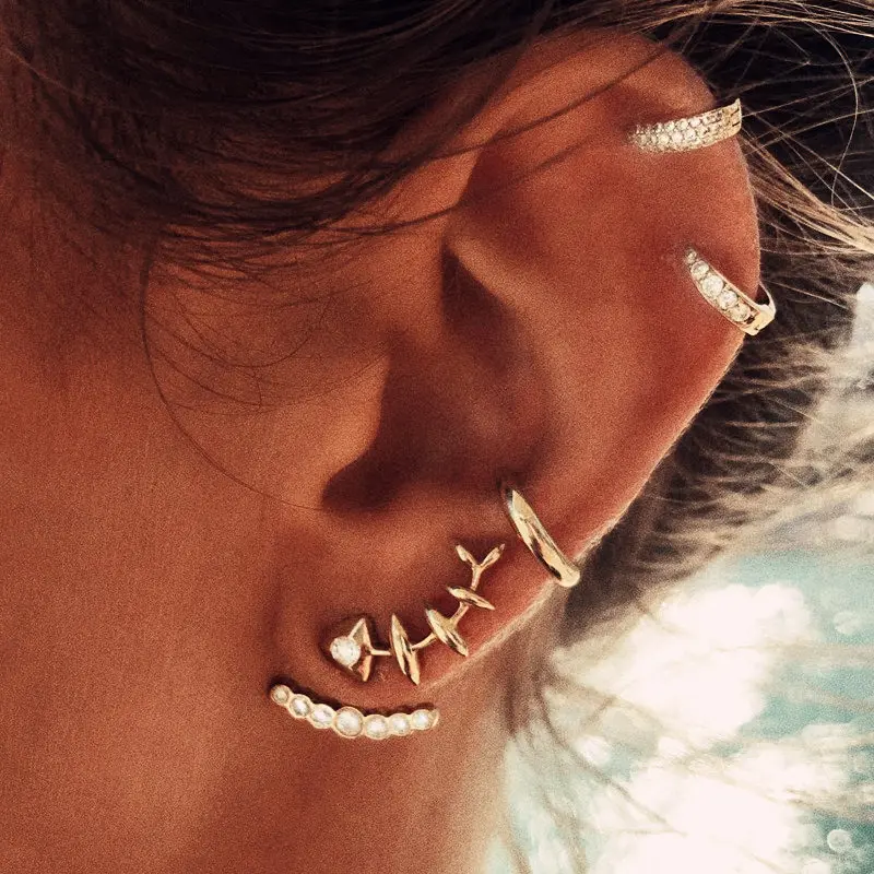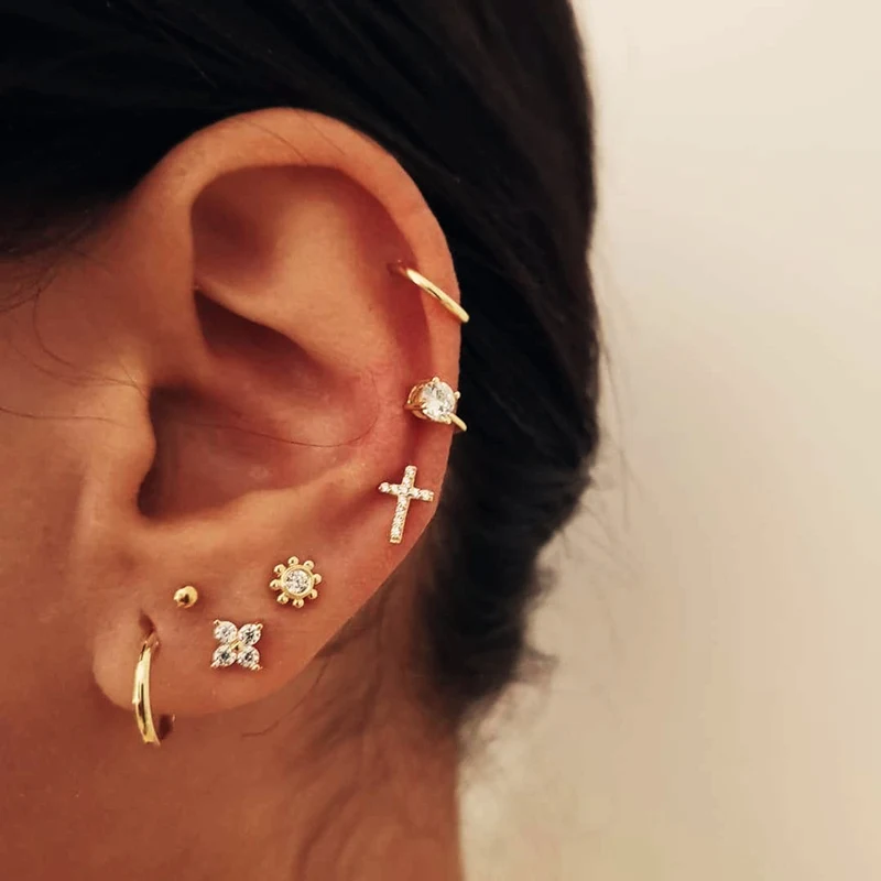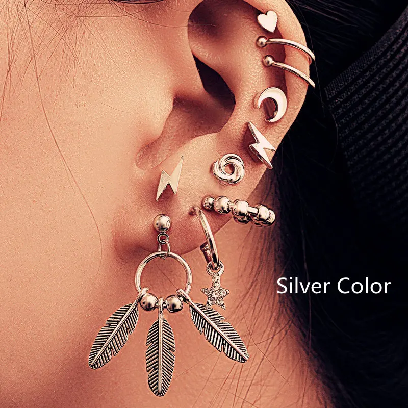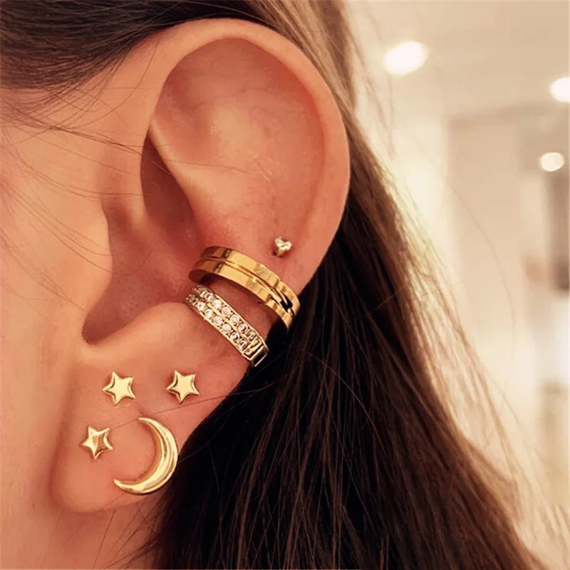 Набор серег-гвоздиков в винтажном стиле для женщин, комплект из разноцветных металлических колец под золото с кристаллами, картой сердца, маленькой Клипсы-манжеты, бижутерия
