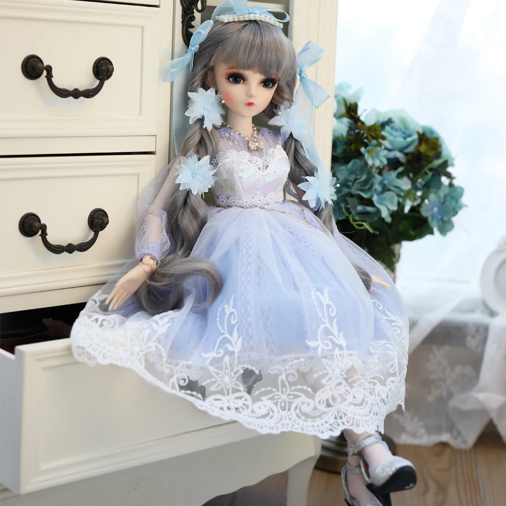 100% куклы ручной работы BJD; В комплект входит: 1 кукла BJD + 1 платье/комплект одежды + 1 парик + 1 пара обуви + лицо для макияжаВысота: 1/3 куклы; 60 см/23,6 дюйма; 18 шариковых шарнирных кукол; Можно сделать много поз: можно сидеть и стоятьГлаза: Сменные с изображением глаз и ресниц;Волосы могут быть съемнымиИдеально подходит для подарков на день рождения, рождественских подарков, подарков для девочек и куколПримечание: суставы и головки не могут быть выбраны; Часть корпуса-Жесткий силиконовый материал