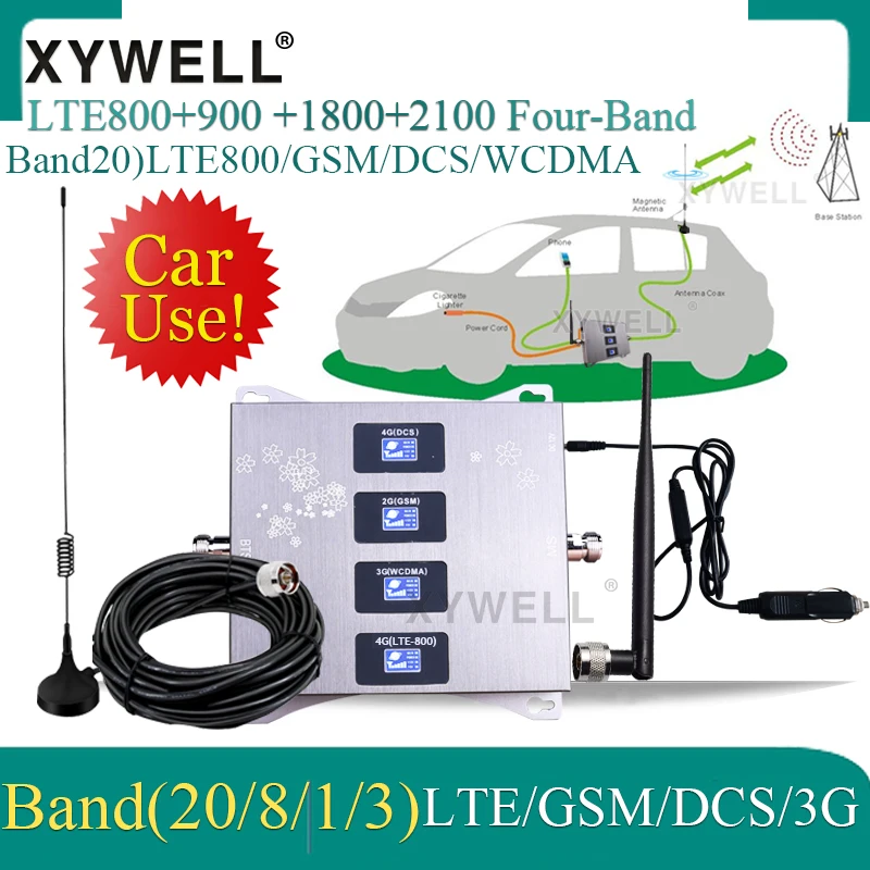 Автомобильный Применение сотовой Band20)LTE800/900/2100/1800 МГц с четырьмя двух Диапазонный усилитель сигнала 2G 3G 4G (B20)FDD LTE 800/GSM 900/(B1)WCDMA 2100/DCS 1800 MHZ Ретранслятор Сигнала Мобильного телефона в автомобиле