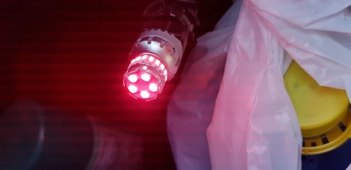 фото до и после. На мазда 3, 1го поколения проблема с плафонами, они плавятся в московской пробке и свет становится жёлтым. хотел уже было покупать новые фонари, но нашёл лампы красного цвета. все отлично подошло ещё и при торможении моргает привлекая внимание зевак.