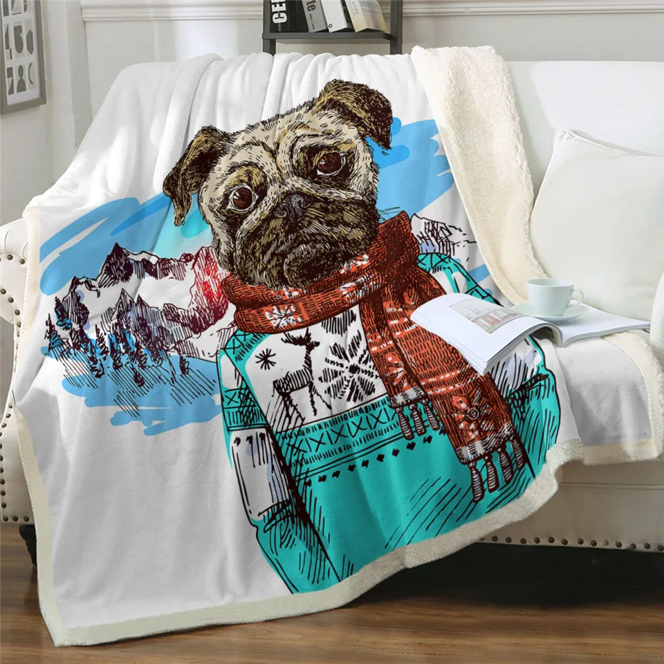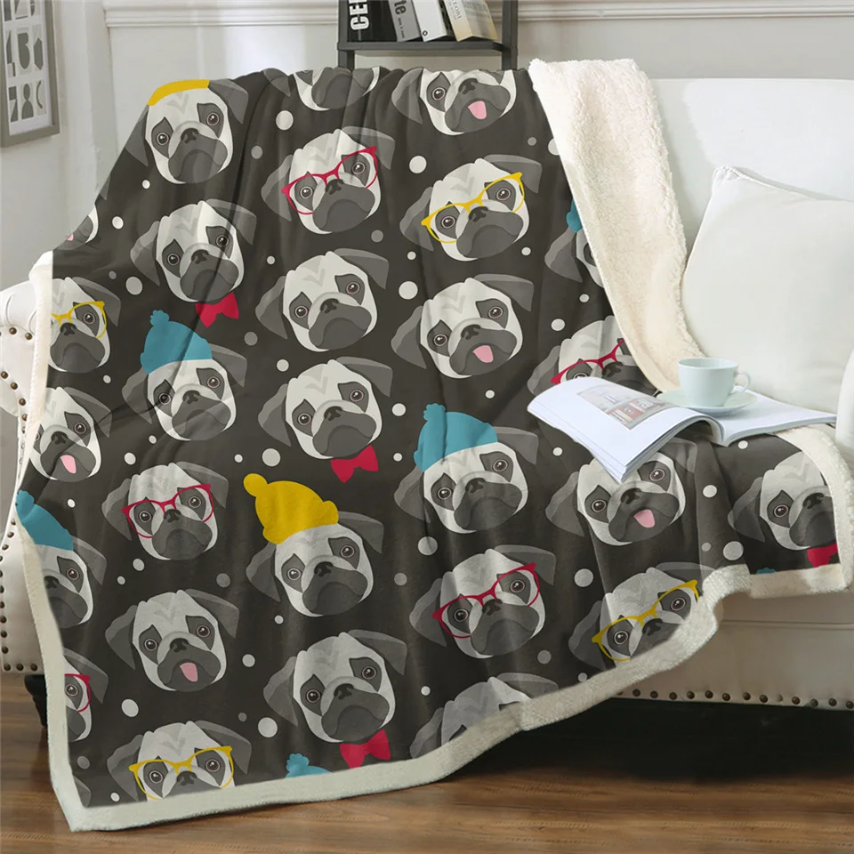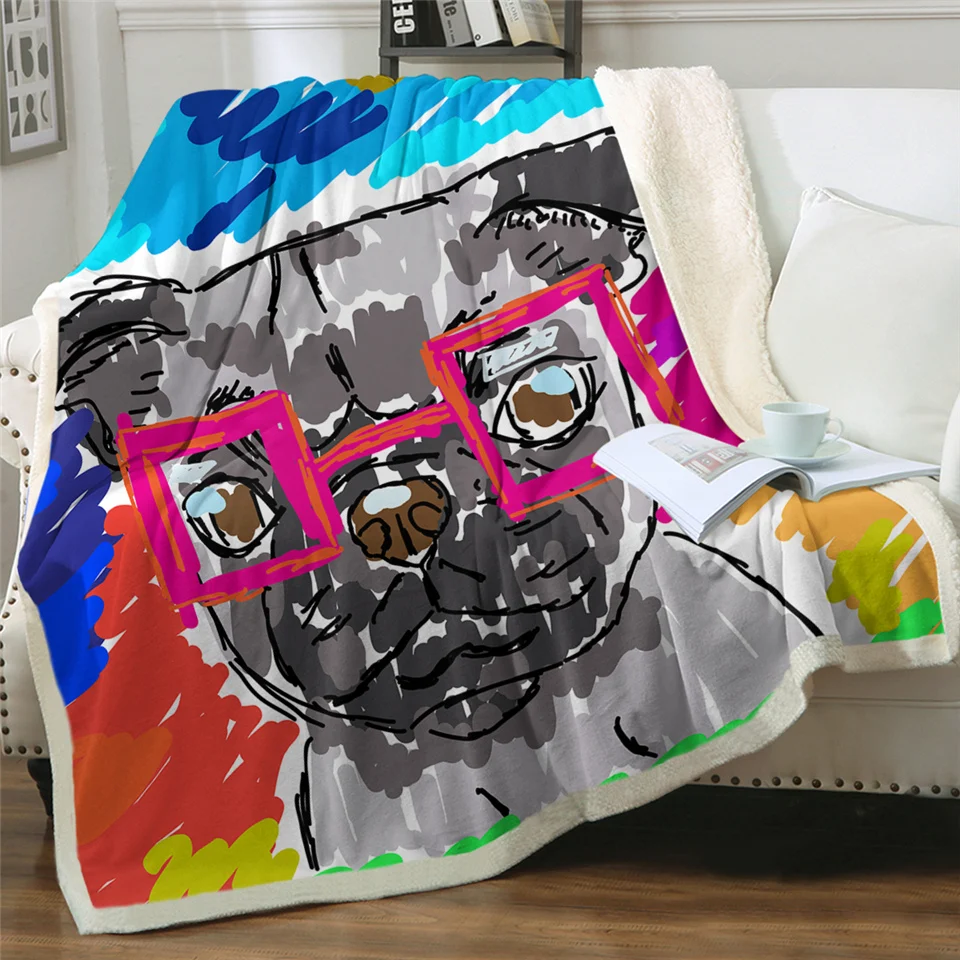 BeddingOutlet, хиппи, мопс, шерпа, одеяло на кровать, мультяшная со...