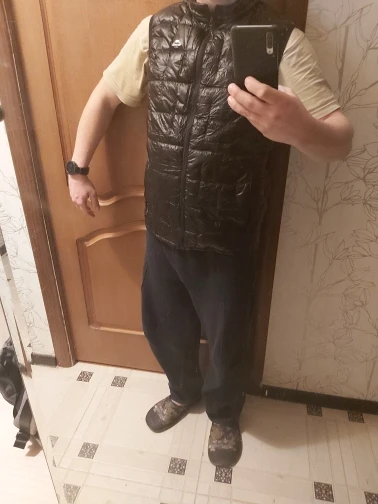 Очень тонкий жилет. Шелестит. Собачка замка очень маленькая. Проймы для рук небольшие, не совсем удобно. Ткань мятая, за неделю так и не разгладилась.