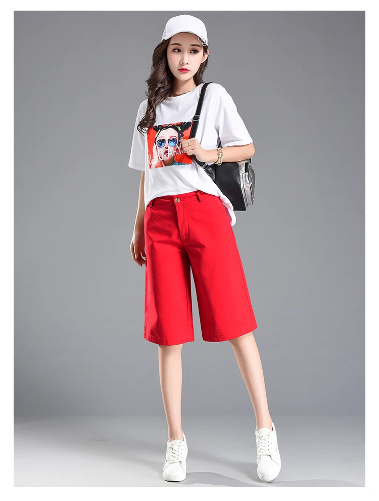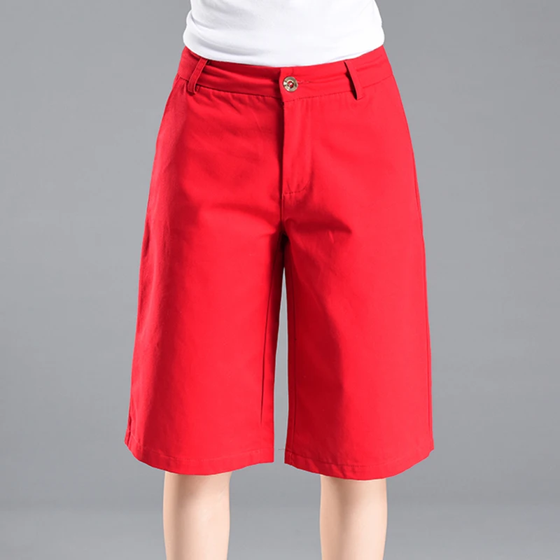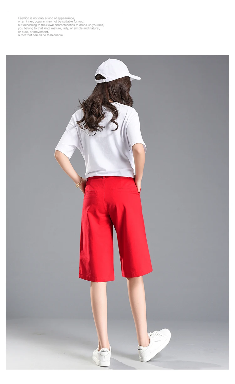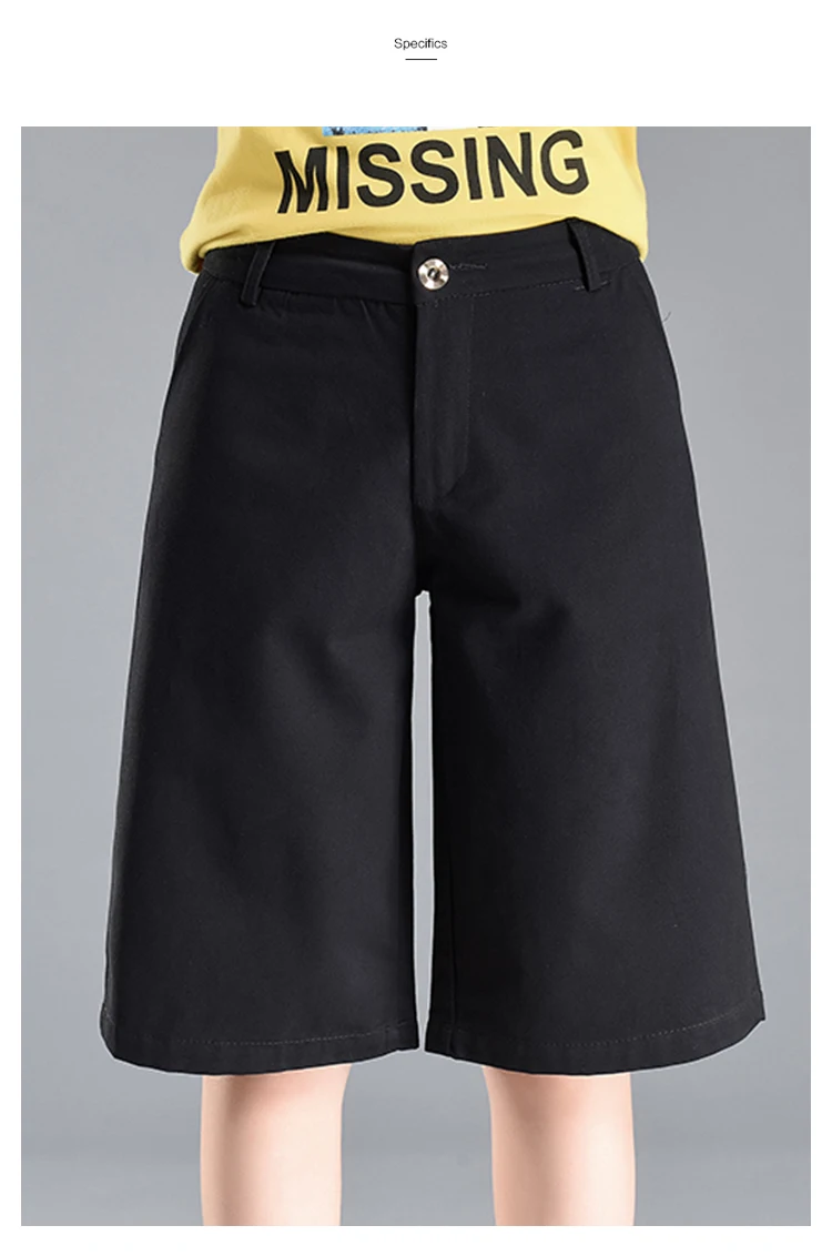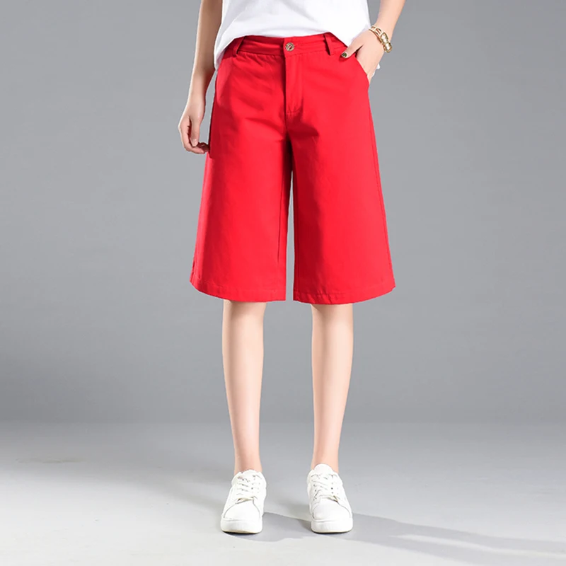 Новейшие повседневные однотонные широкие шорты до колена, женские шорты с высокой талией, женские летние шорты с высокой талией и широкими штанинами, женские короткие длинные шорты