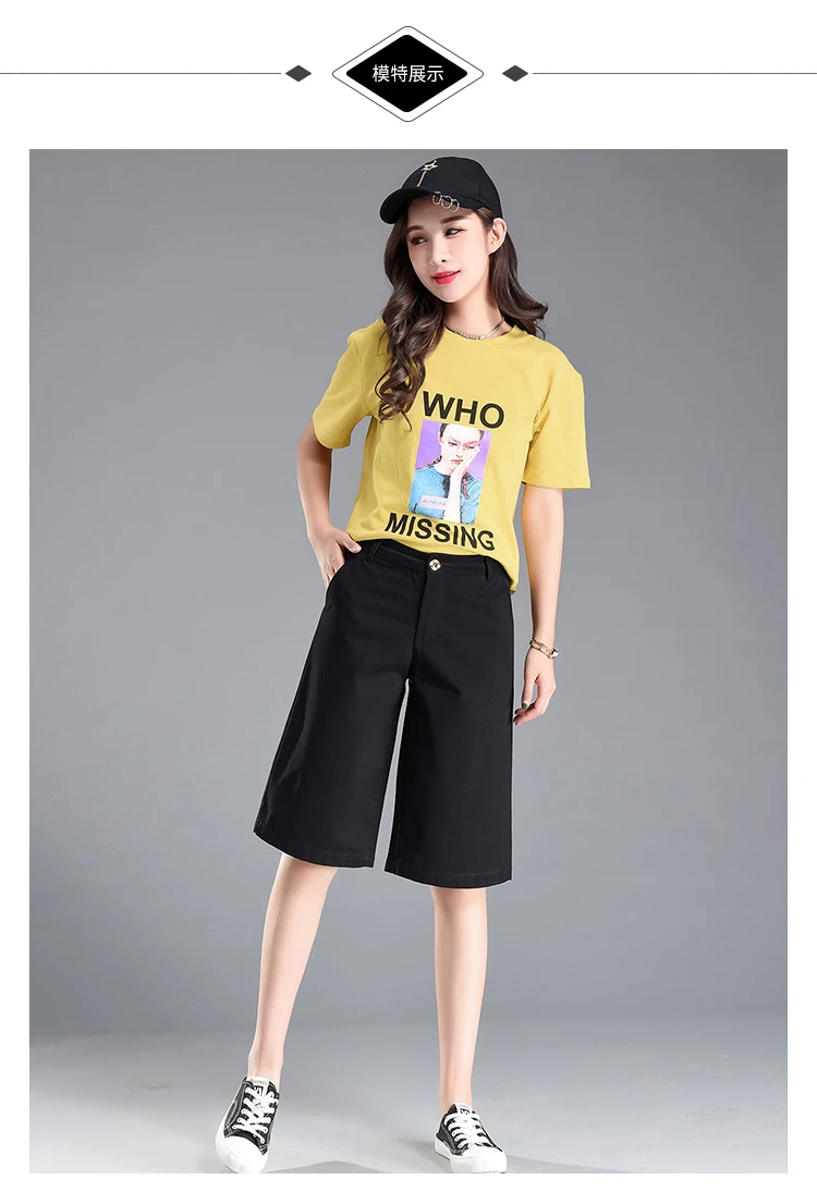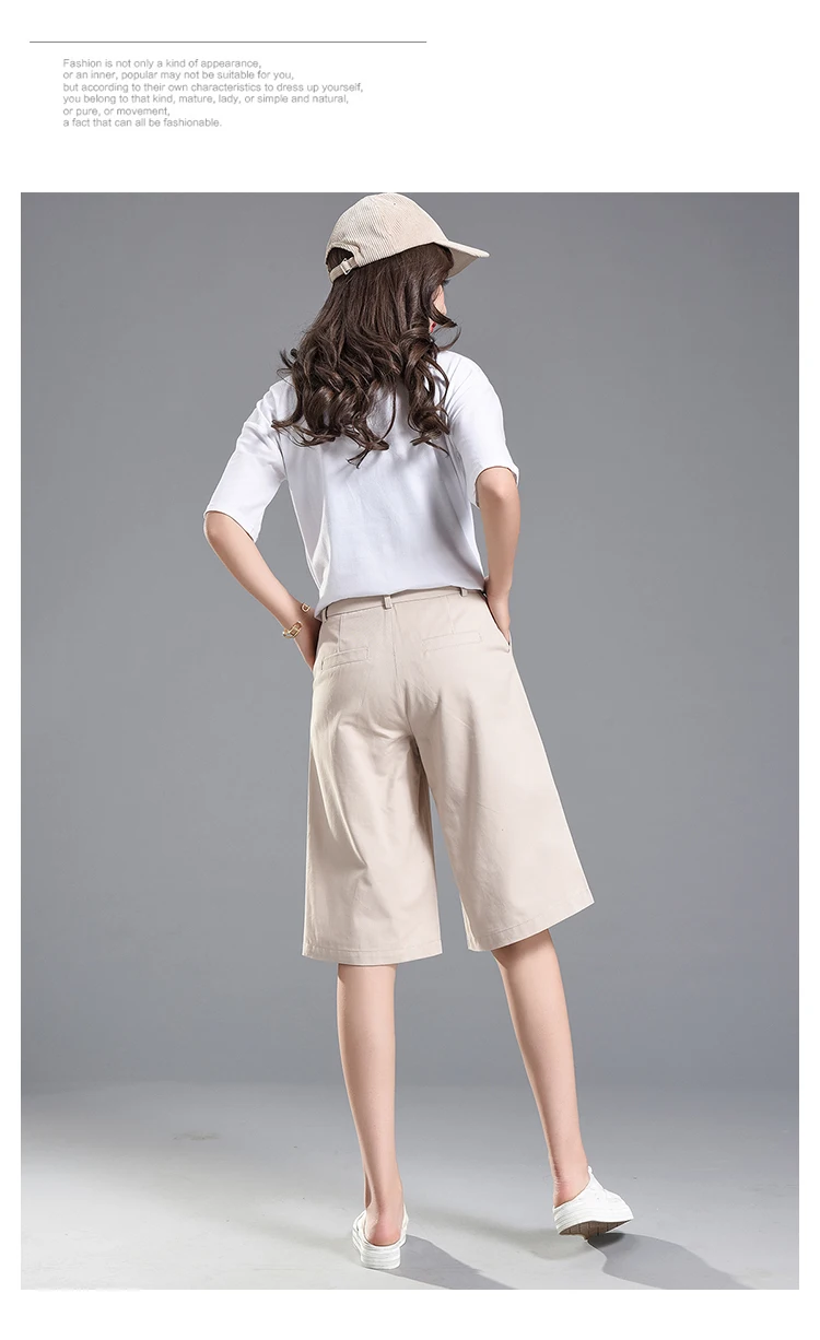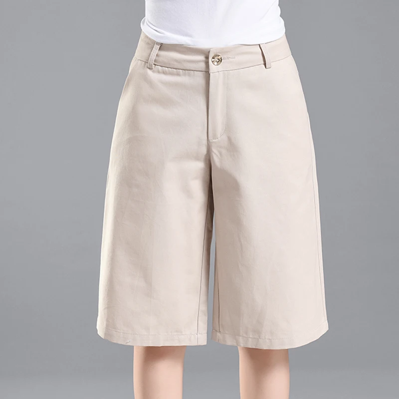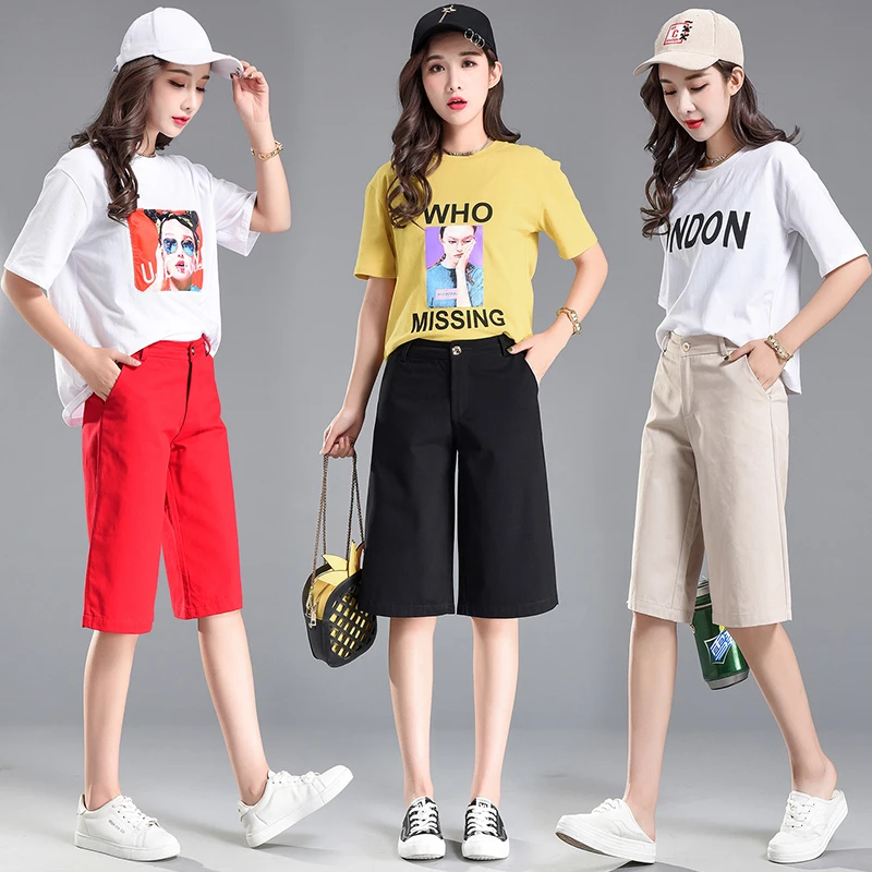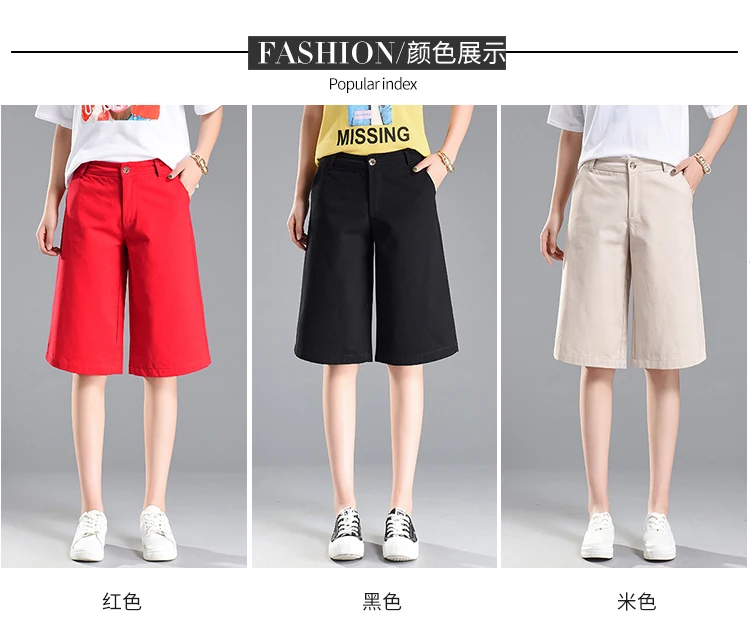 Новейшие повседневные однотонные широкие шорты до колена, женские шорты с высокой талией, женские летние шорты с высокой талией и широкими штанинами, женские короткие длинные шорты