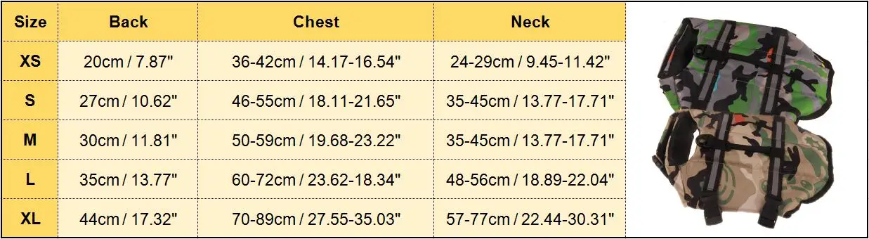 XS: длина по спинке 20 см/7,9 ", обхват груди 30-45 см/11,8"-17,7"S: длина по спинке 25 см/9,8 ", обхват груди 41-51 см/16,1"-20"M: длина по спинке 30 см/11,8 ", обхват груди 45-55 см/17,7"-21,7"L: длина по спинке 35 см/13,8 ", обхват груди 50-75 см/19,7"-29,6"XL: длина по спинке 40 см/15,7 ", обхват груди 70-85 см/27,6"-33,5"