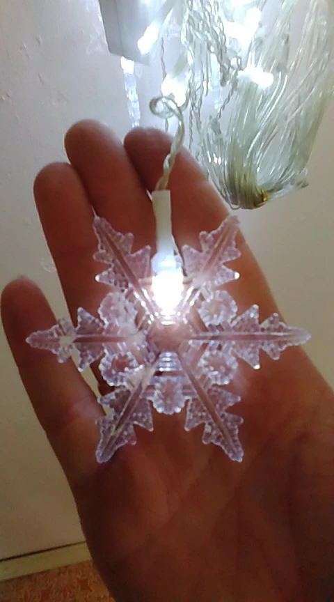 Посылка входит:1 х светодиодная гирлянда для штор со снежинками