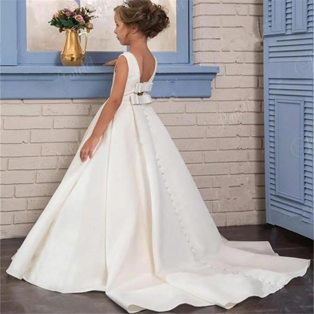 Атласное Платье для девочки, белое цвета слоновой кости, с цветами, для свадьбы, дня рождения, вечеринки, без рукавов, на заказ, для Первого Святого Причастия, конкурсное платье