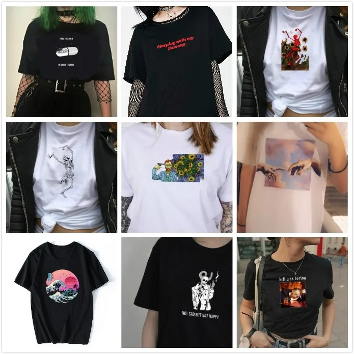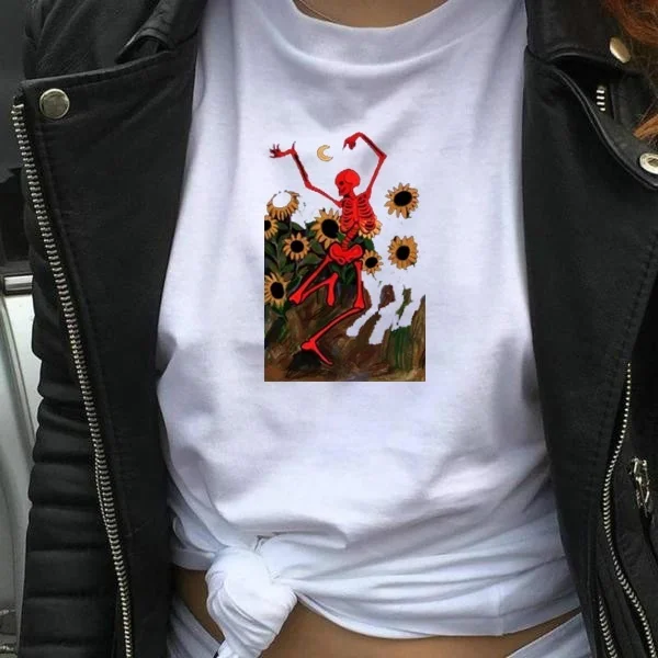 Kuakuayu HJN женская Танцевальная футболка со скелетом Tumblr гранж...