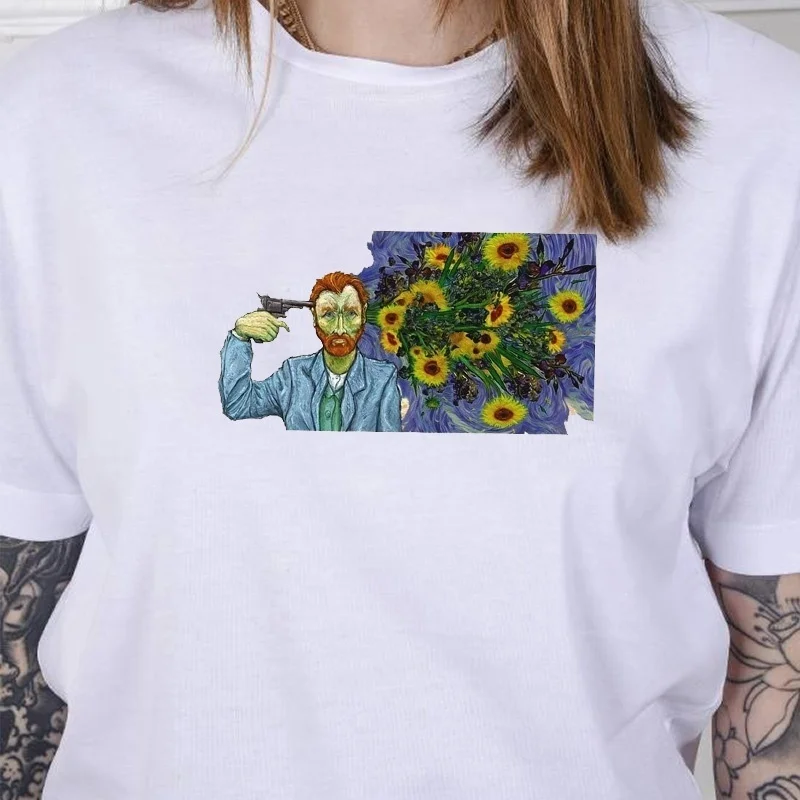Белая футболка с рисунком Ван Гога kuakuayu HJN, в стиле 90-х