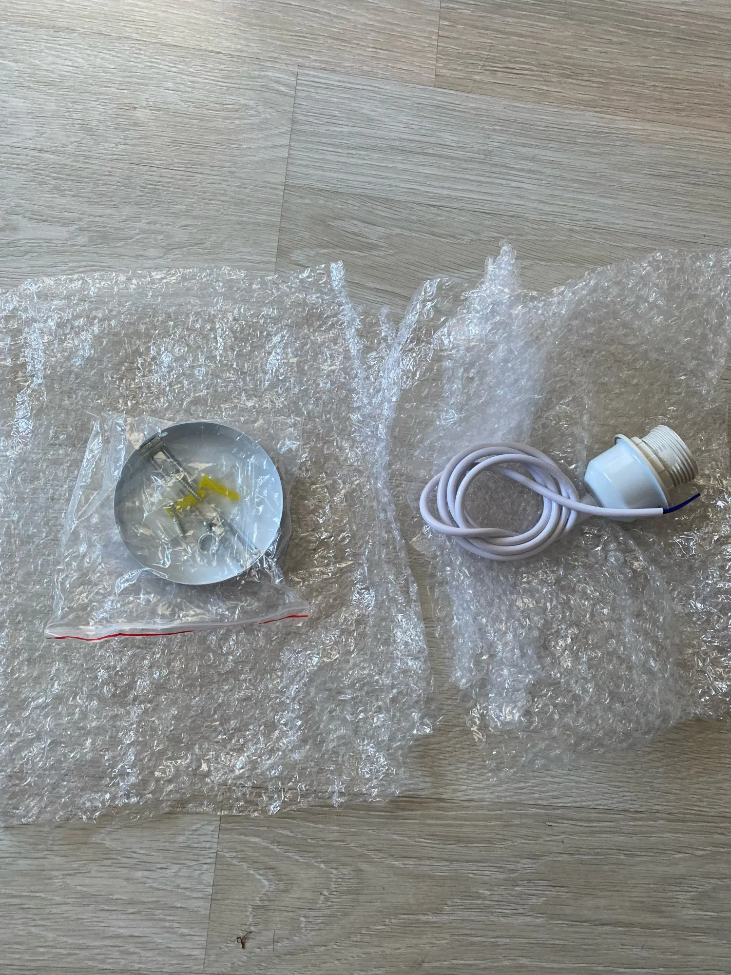 Пришла люстра хорошо упакована в коробку. Абажур из тюли, чем то пропитанной, чтоб держала форму, поэтому мочить скорее всего нельзя.Прошла отпаривателем, чуть разгладила «листочки». Взяла самый большой размер, но на деле он см 75, не больше. Брала в детскую комнату, мне нравится.