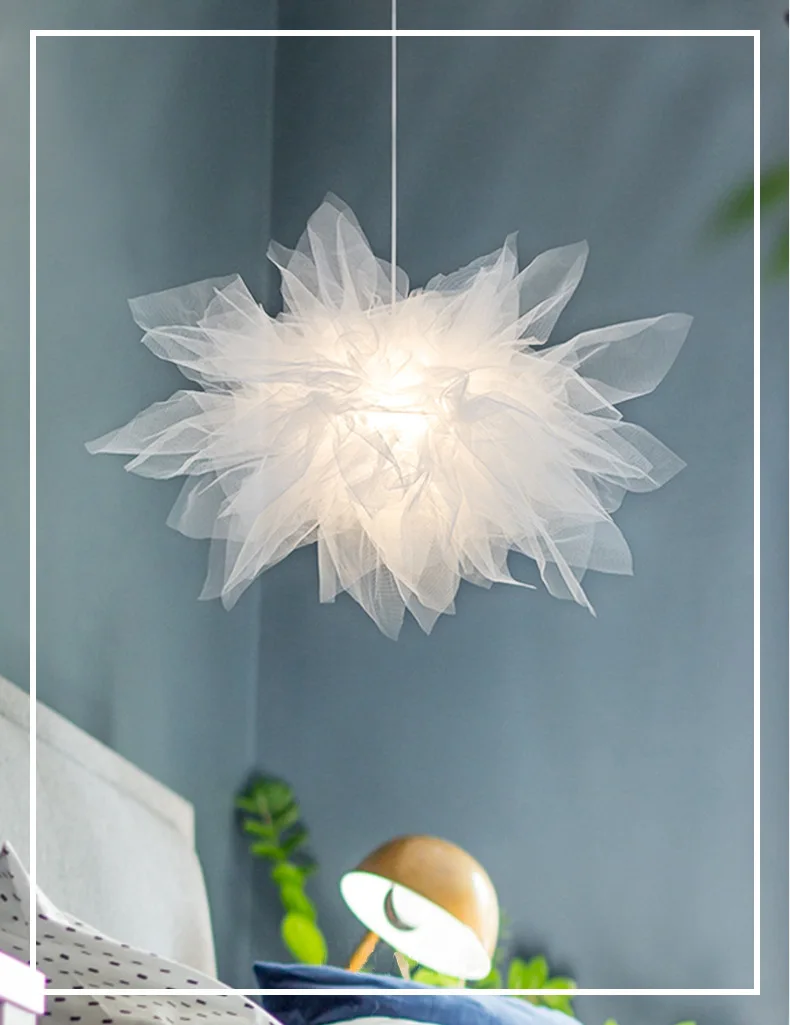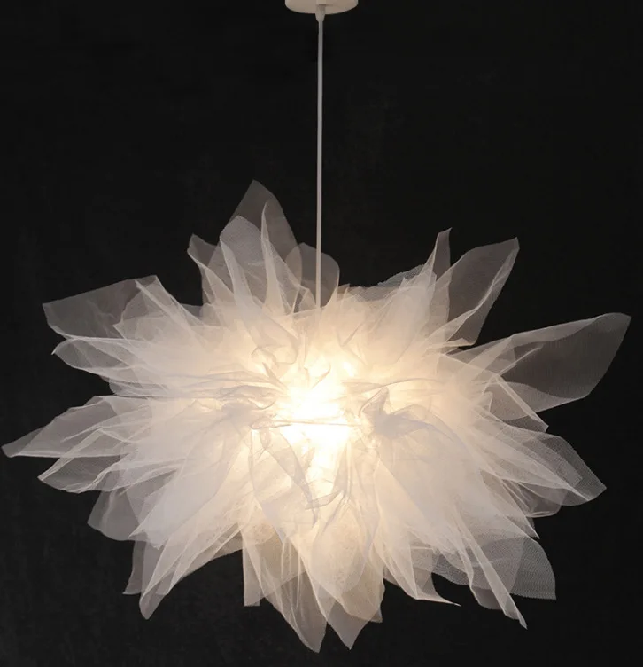 Свадебное украшение, кружевная белая Подвесная лампа из вуали, креативное художественное дизайнерское потолосветильник освещение для девушек, женское освещение для спальни