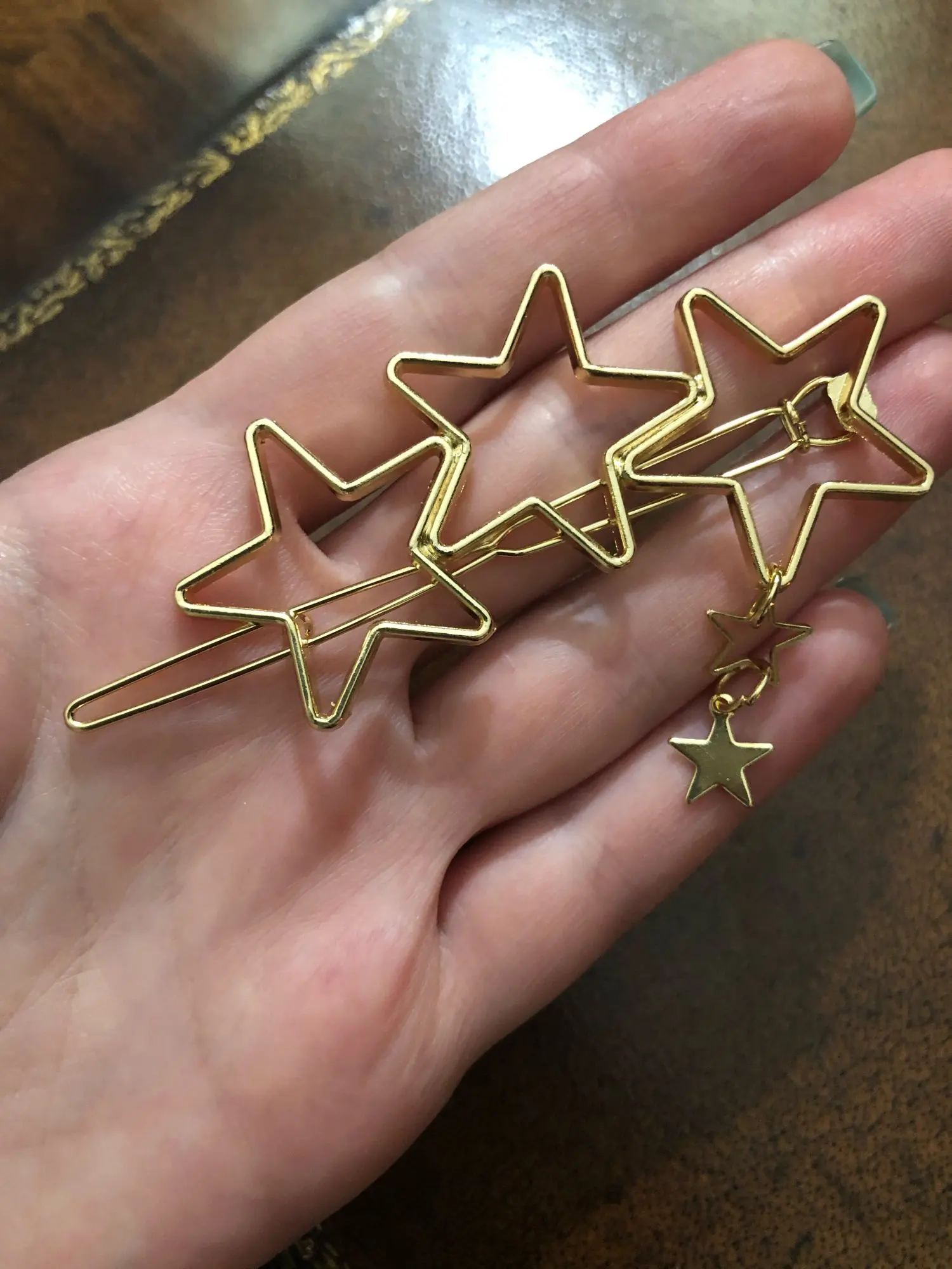 Это мило. Довольно большой, но золотой цвет не очень приятный. Кажется, что он уже был использован раньше. Также очень хрупкий.