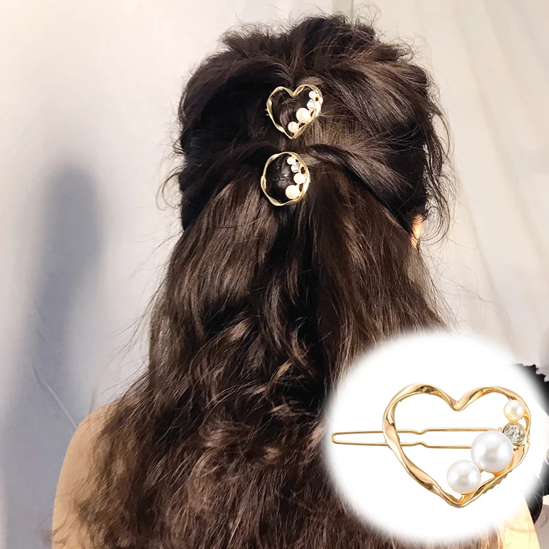 Женская заколка для волос, с жемчугом и сердечком, ювелирное изделие в виде заколки