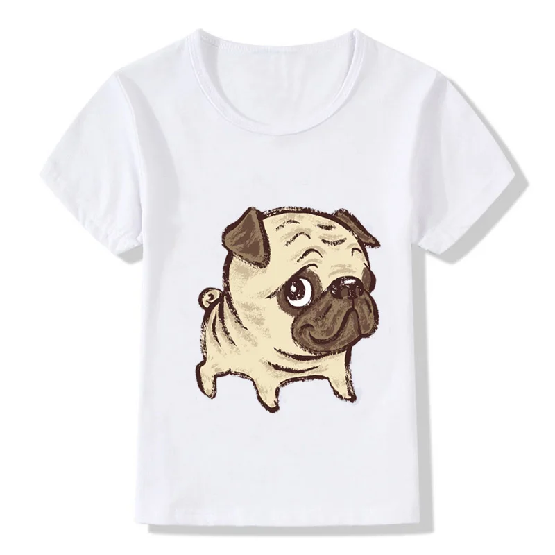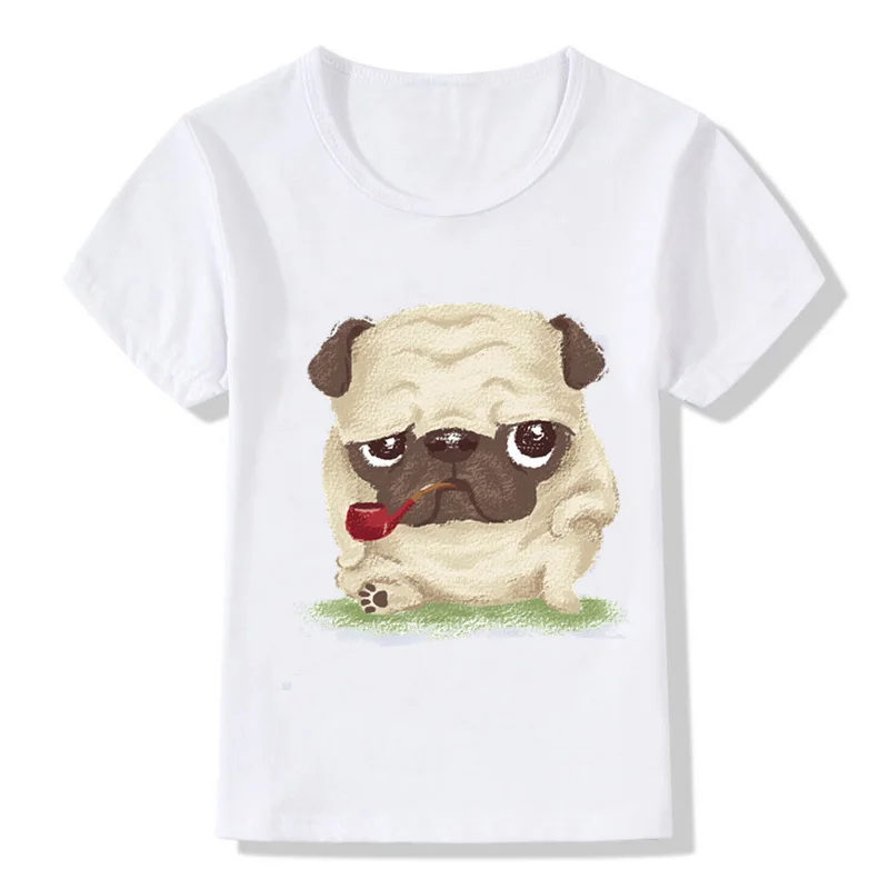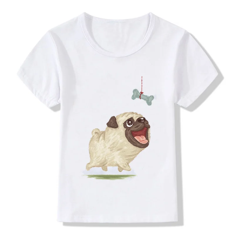 Детская винтажная забавная футболка с акварельным принтом мопса для девочек и мальчиков, Летние удобные топы с круглым вырезом, детская повседневная Милая футболка, BAL613