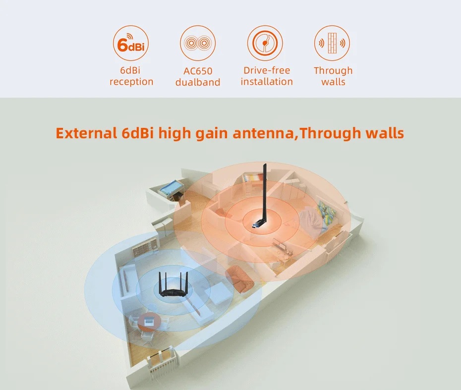 Беспроводная скорость может достигать 433 Мбит/с (5 ГГц) + 200 Мбит/с (2,4 Гц), поэтому вы можете наслаждаться вашей свободного времени