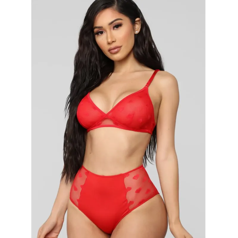 Комплект женского кружевного нижнего белья из 2 предметов, прозрачный бюстгальтер + стринги