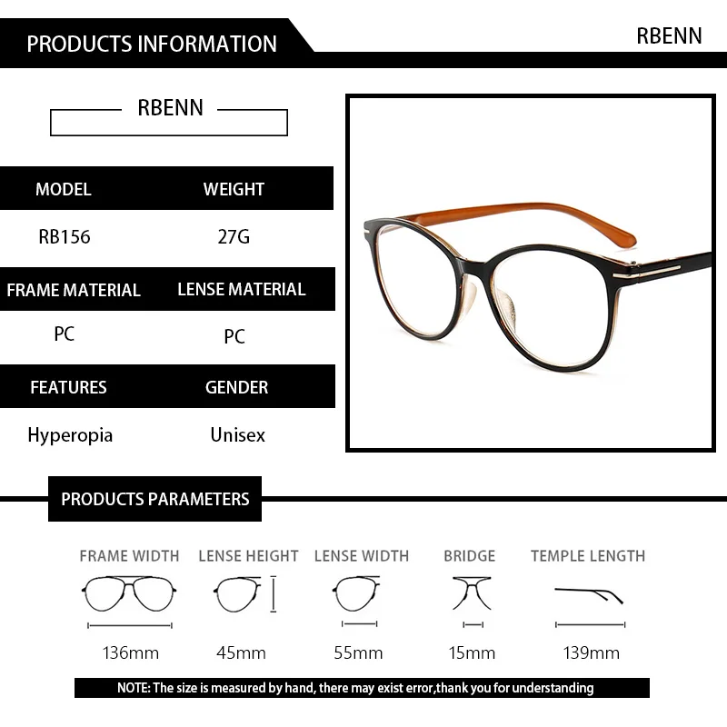 Очки для чтения RBENN для мужчин и женщин, модные пресбиопические с диоптриями + 0,5 0,75 1,25 1,75 2,25 2,75 3,25 3,75 4,5 5,0 6,0