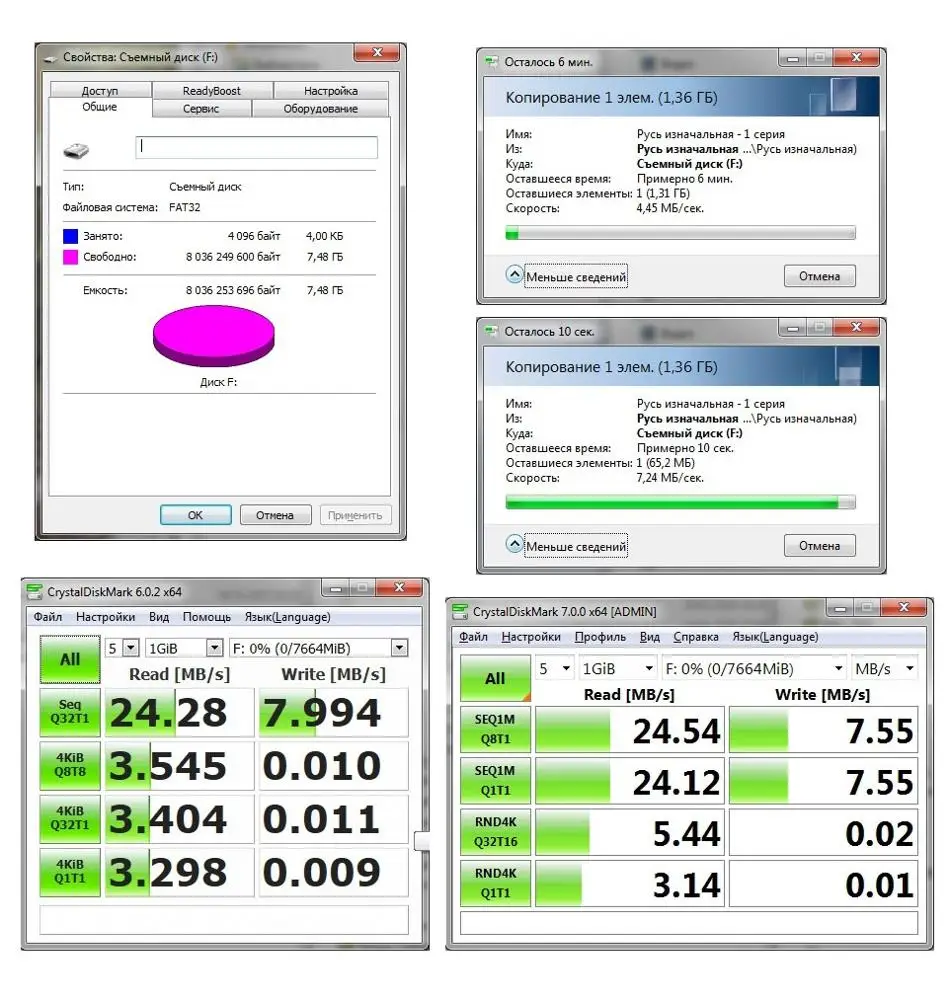 Флешку заказывал на 64 ГБ , в реале получил 58,5 ! Если считать как считают производители таких устройств , то получается что пару гигов недодали! Класс примерно 6 - 7.5 мб /сек на запись . За такие деньги пойдет! За такую сумму брал в у нас на 16 гб... Посмотрим сколько прослужит. Советовать не могу , может кому не понравиться недостача объема памяти и скоростные данные хотя написано что usb 2,0 . h2testw прошла без ошибок , скрины не сделал... Доставка реактивная - 11дней , дольше каталась по китаю, да на таможне , благодаря 5Post по России всего три дня!!! Молодцы "Пятерочка "! Удобно , в трех шагах от дома ,никаких очередей! Приходит смс , идешь к постамату , вводишь код и вот вам счастье!