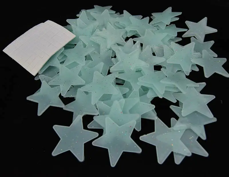 100 шт.пакет 3 см светящиеся наклейки-звездочки светятся в темноте игрушки для Спальня диван флуоресцентный игрушка раскраска ПВХ настенные наклейки для детской комнаты