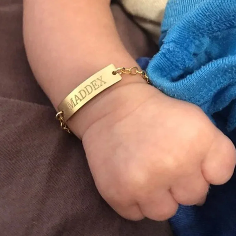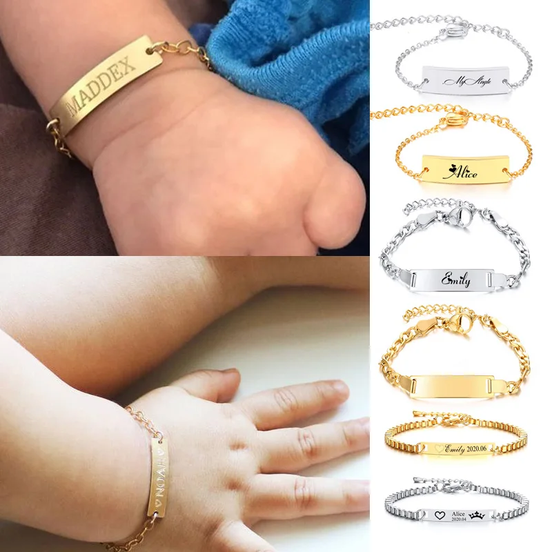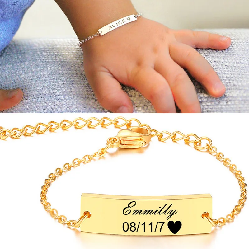 Детский браслет из нержавеющей стали с гравировкой, индивидуальный подарок на день рождения для девочек и мальчиков, детский браслет с именем