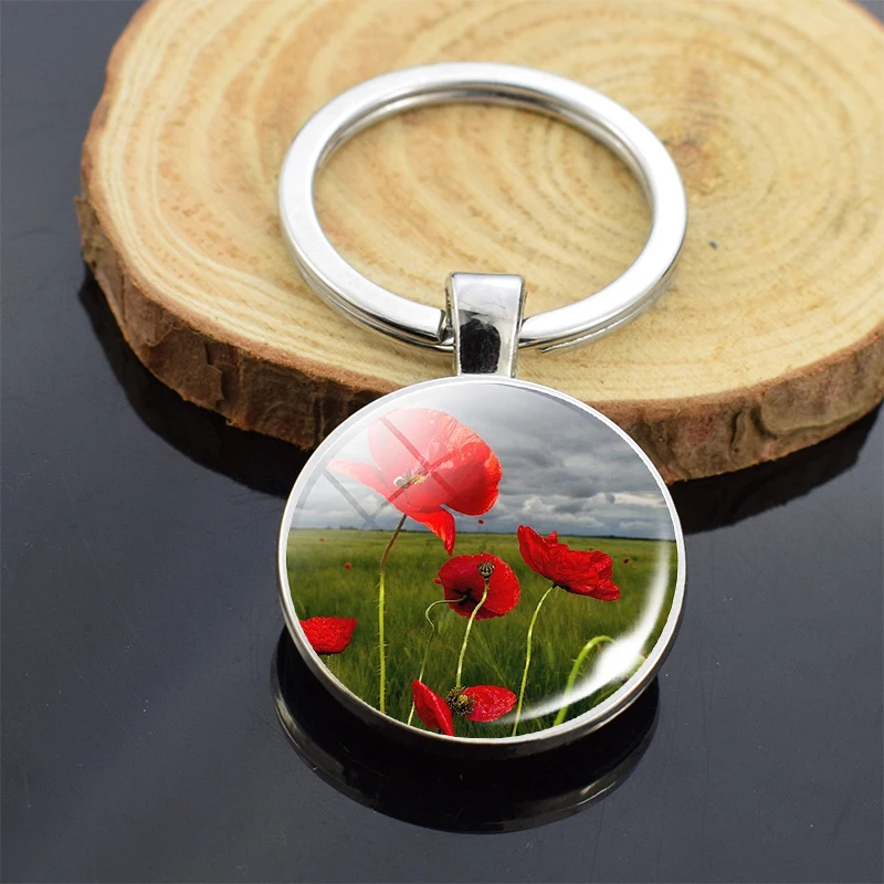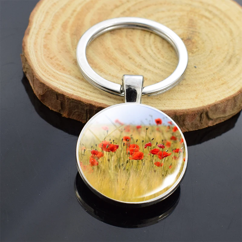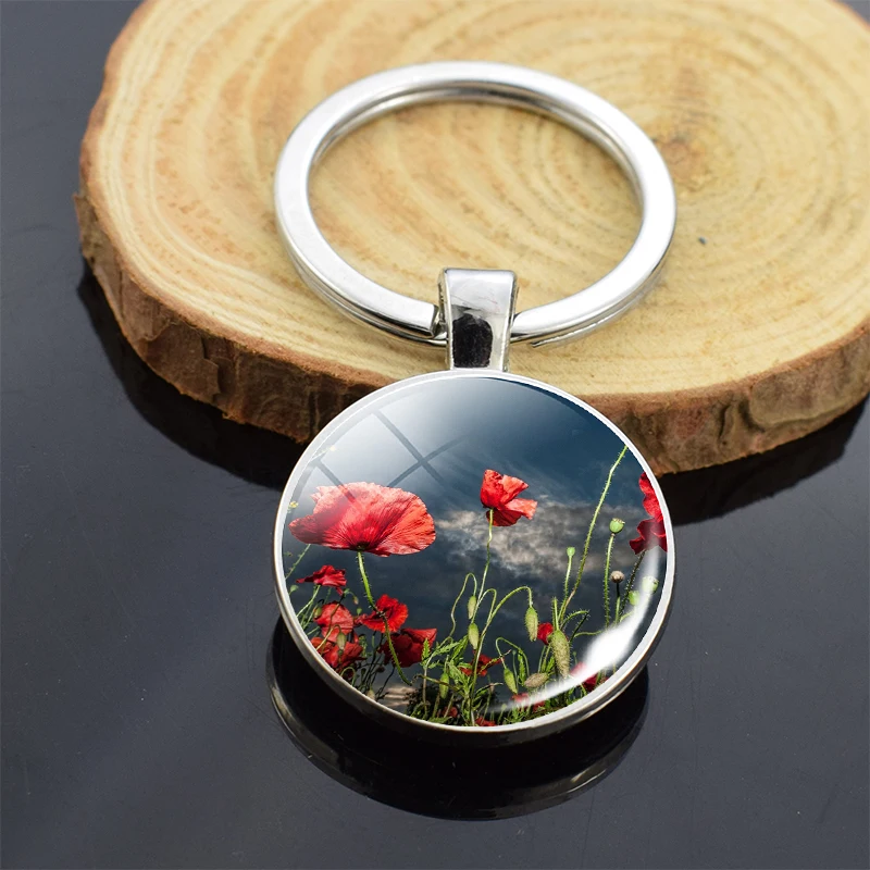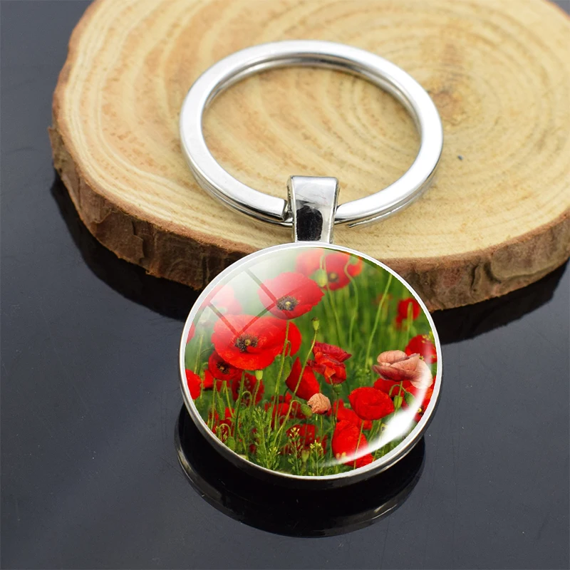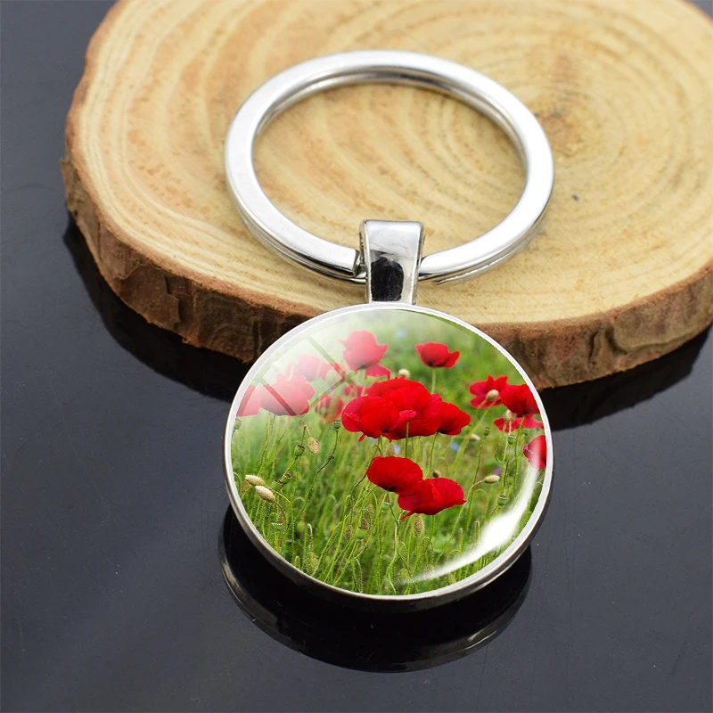 Брелок для ключей с цветами, двухсторонний стеклянный брелок с кабошоном, подвеска для ключей